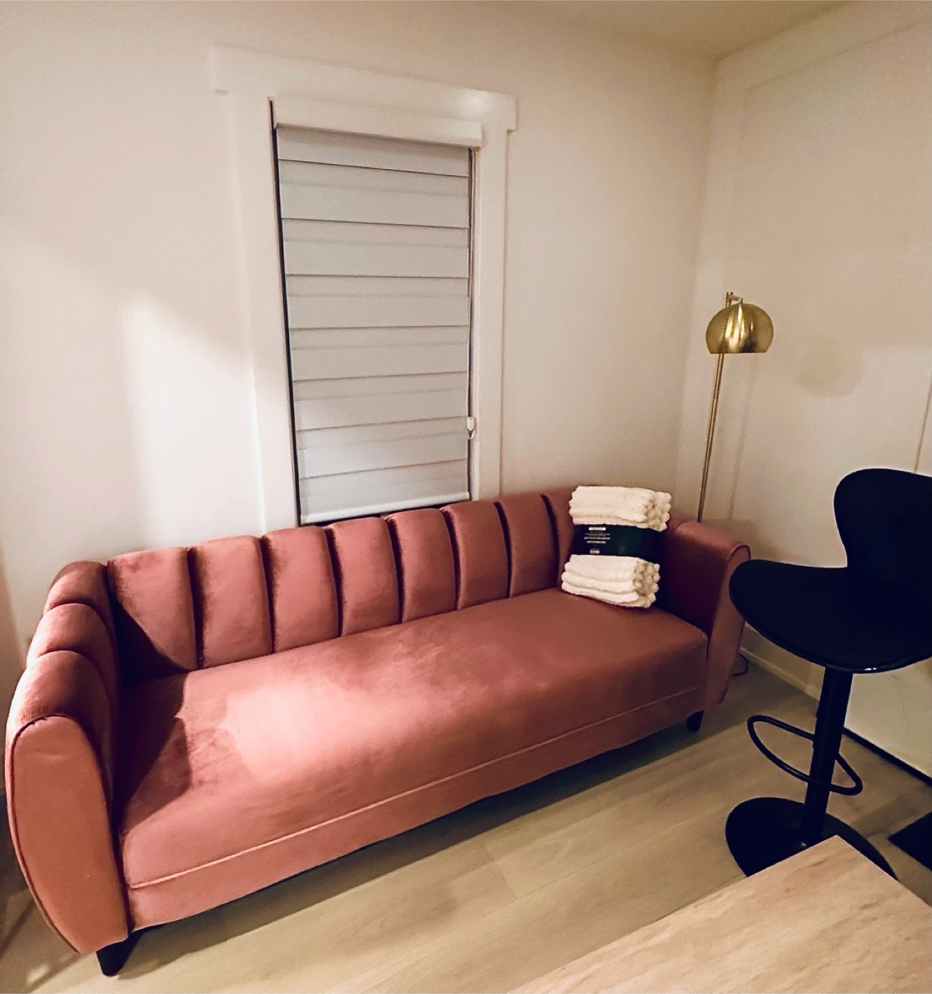 Elegant, modern glam 3-seater velvet sofa, brand new with original packaging. Retail price $1,090 + tax + shipping. Recently assembled (2 days ago) —no wear, no damage. Selling because I opted for a sectional.