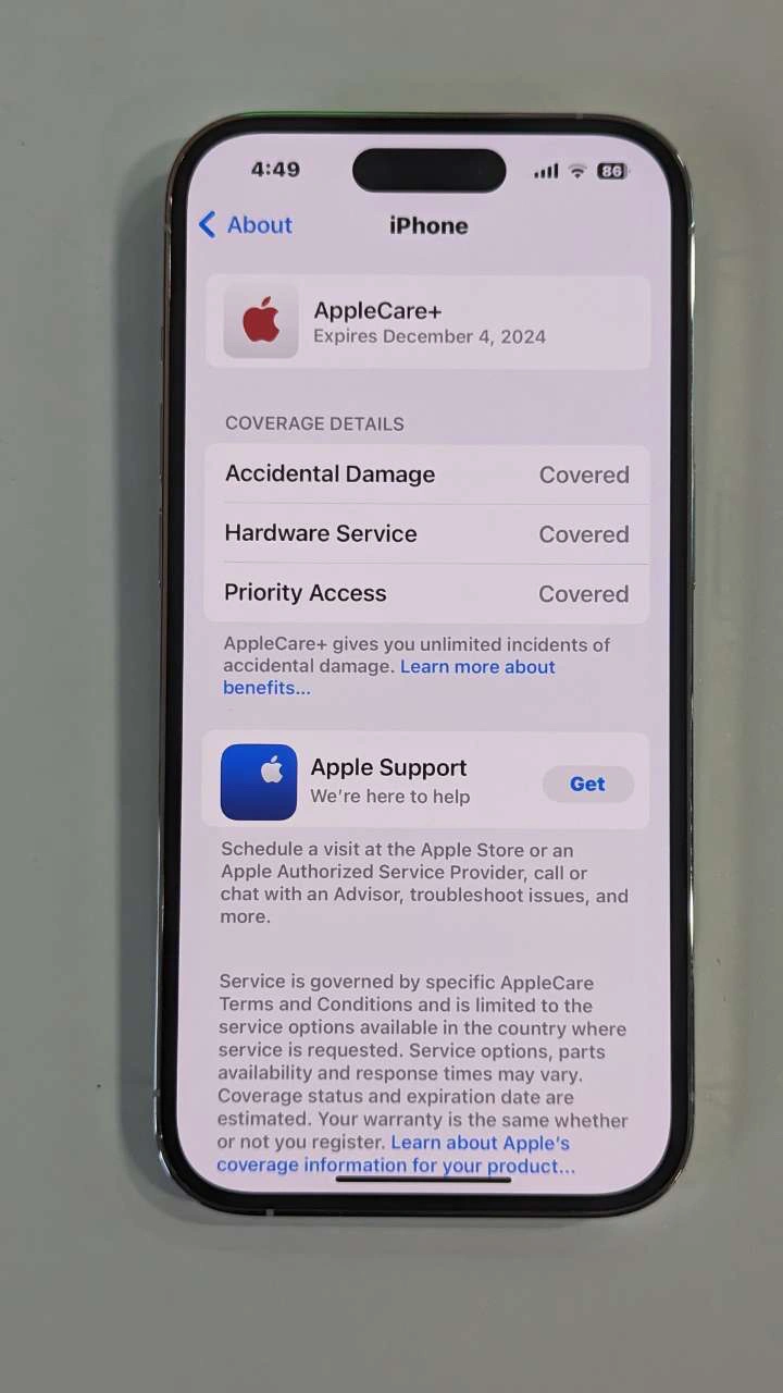 - AppleCare+ valid until Dec. 4