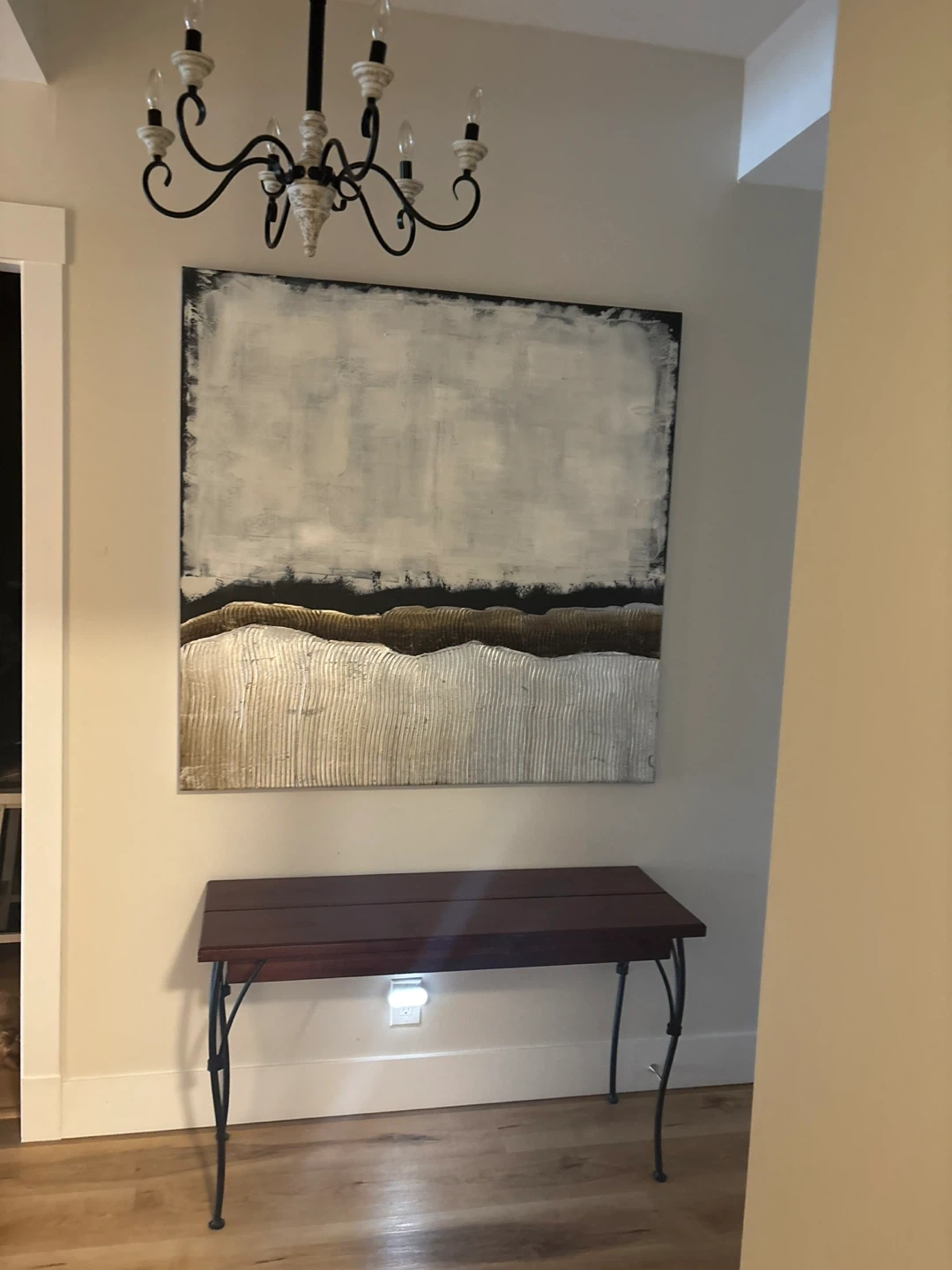 Long Wooden entrance table with black iron legs