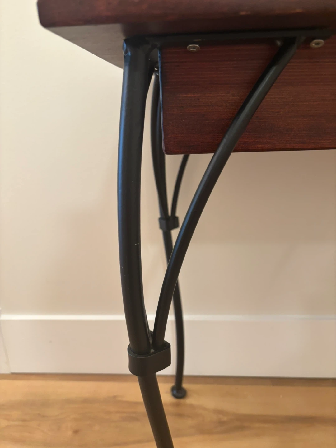 Stunning long accent entry table. Solid wood with blank iron legs also good as a tv stand or behind a couch table. Quite heavy weight.
