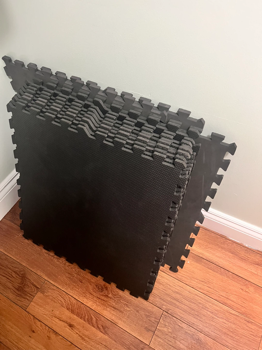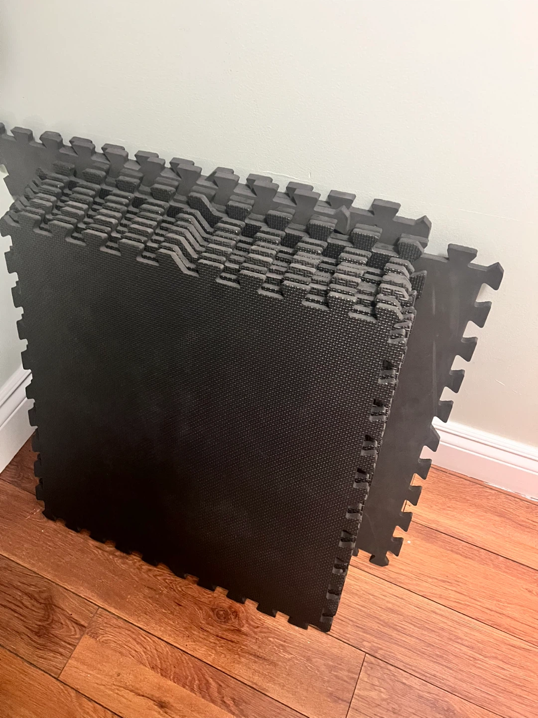 This set includes interlocking foam floor mats. They provide cushioning and a non-slip surface. Perfect for gyms or play areas!
