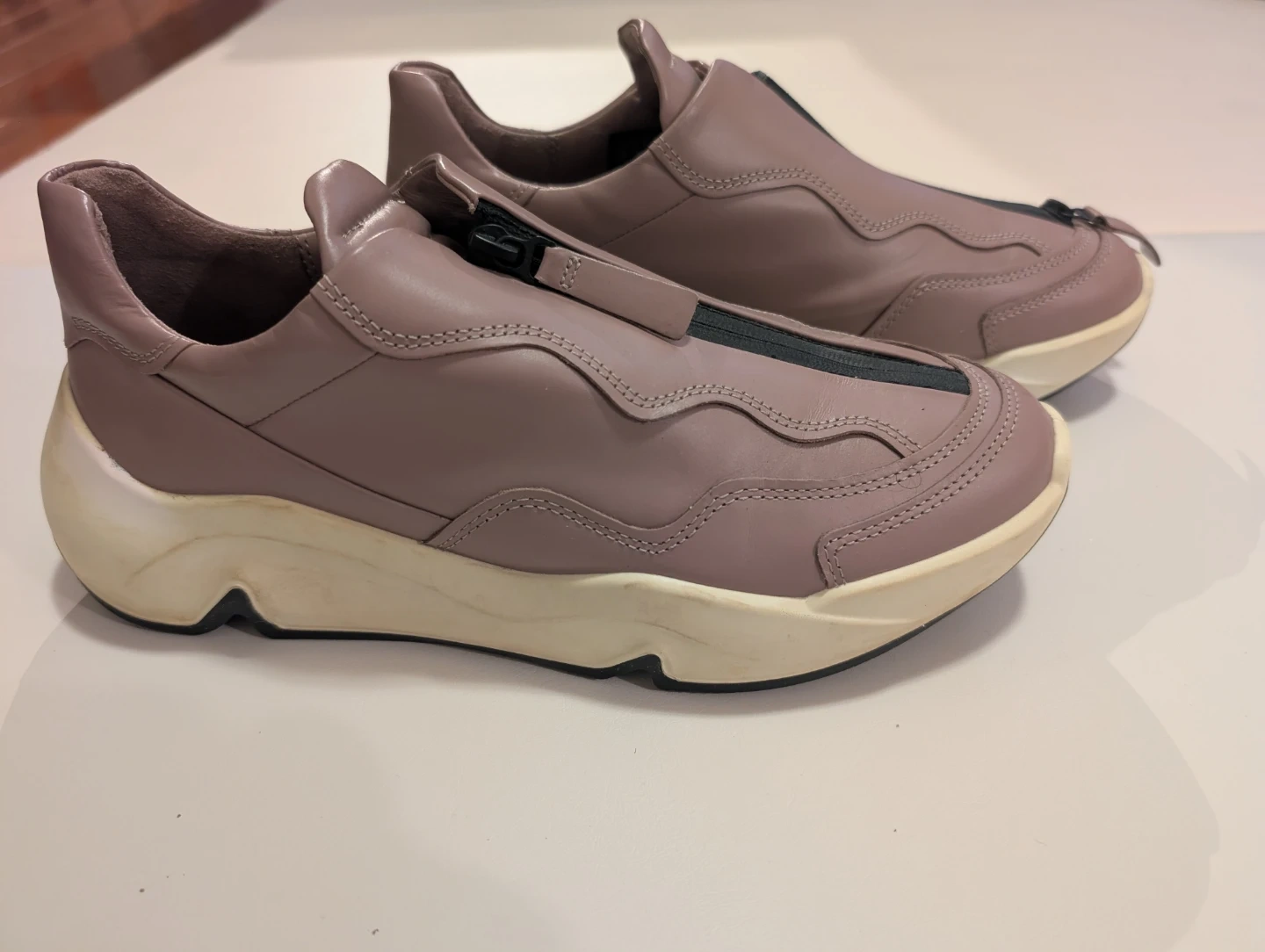 ECCO women's sneakers in a mauve leather. With zip on top. Only used a few times. Retails for $200+.