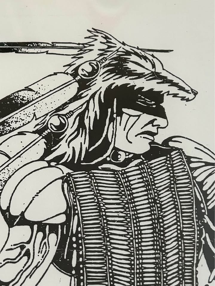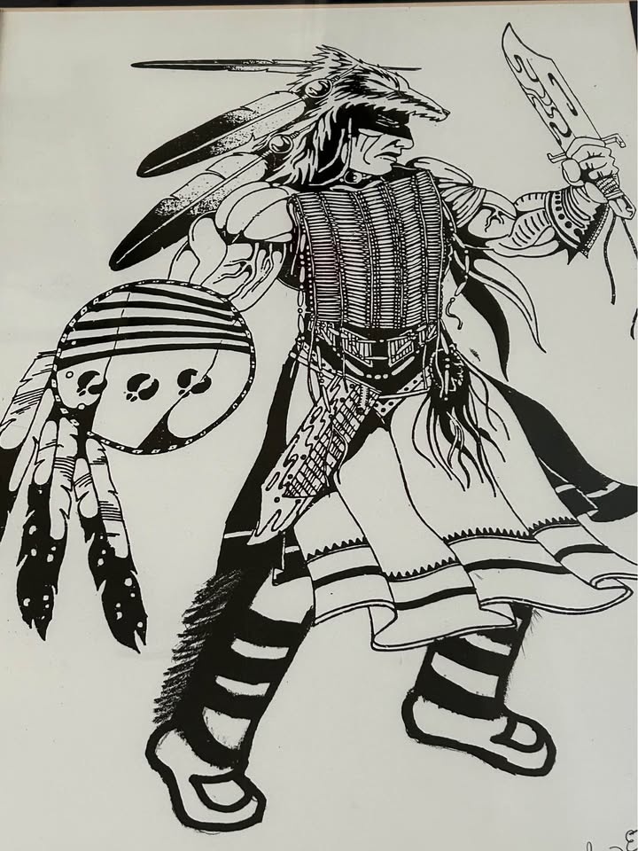 Bold black-and-white graphic style with strong traditional warrior imagery. The artwork is printed, and the signature is hand-signed by the artist.