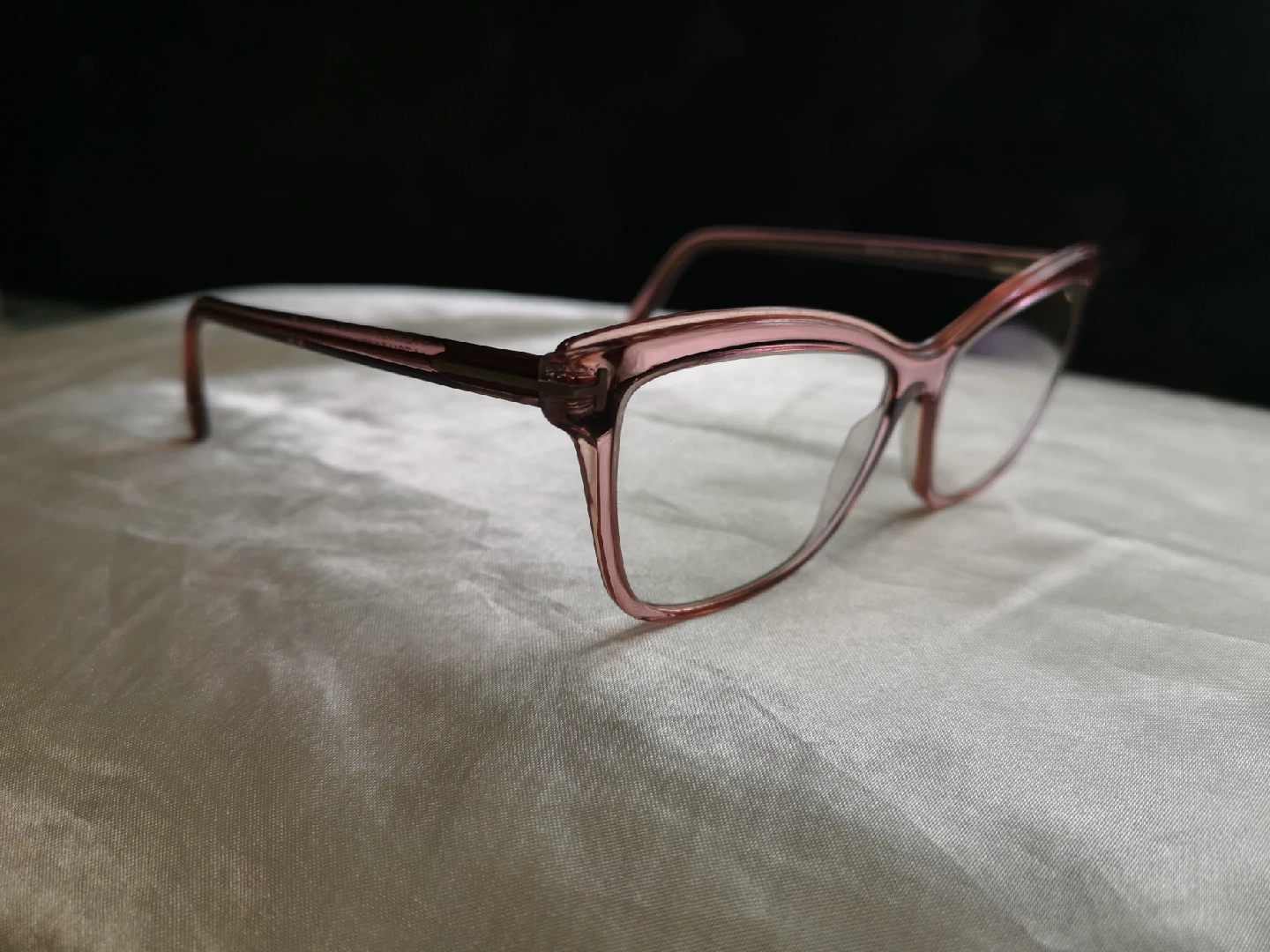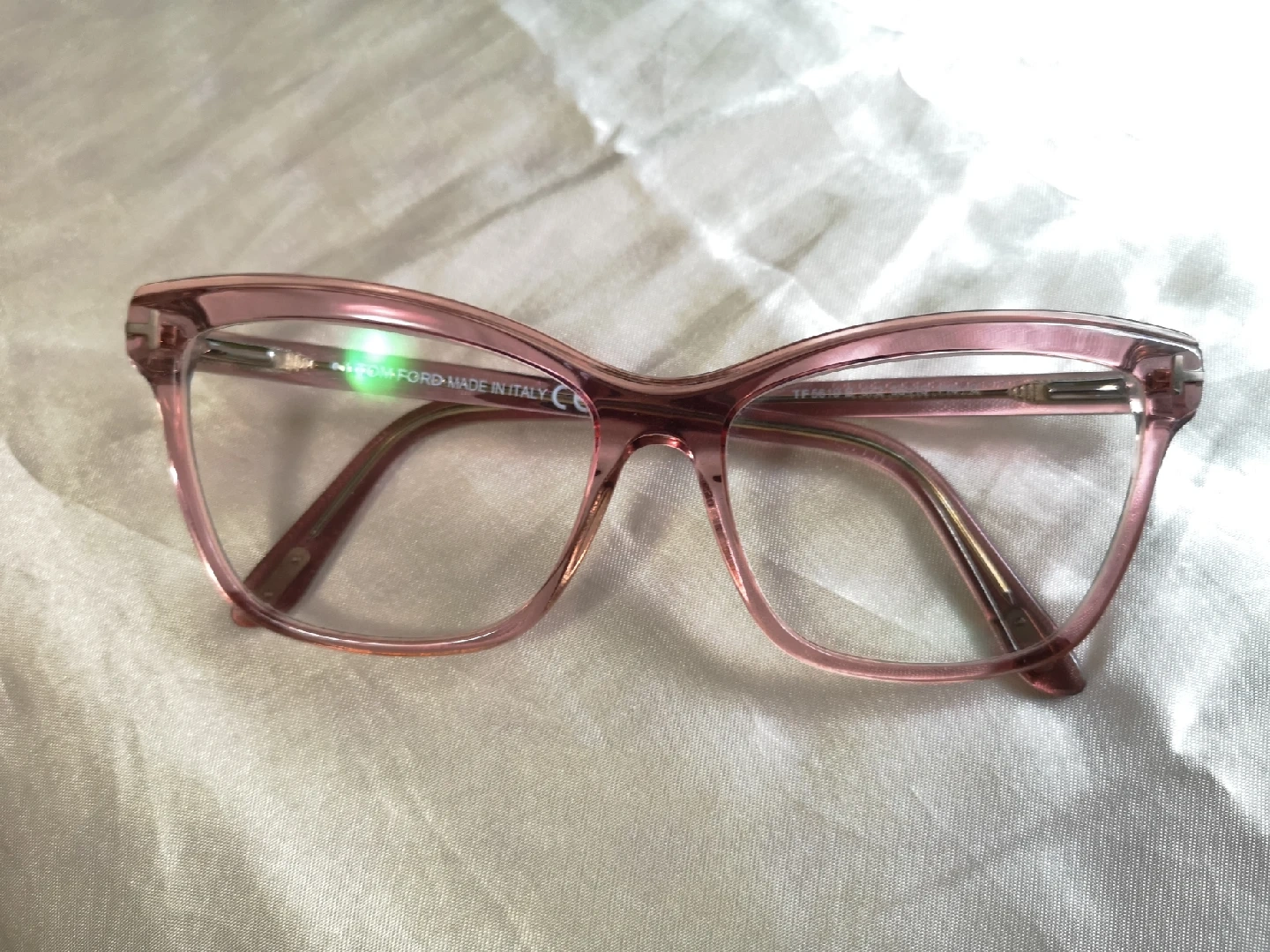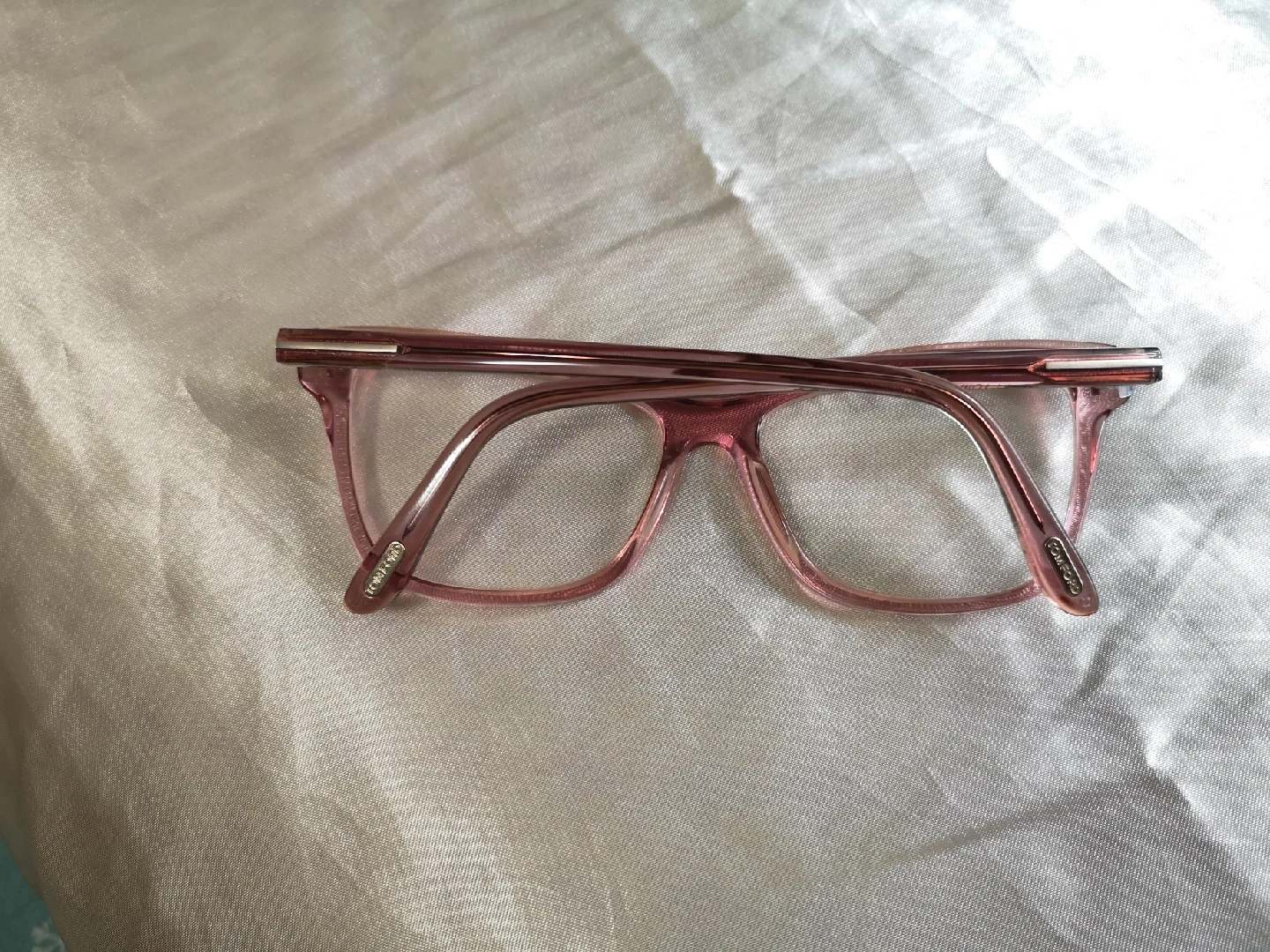 Selling a pair of Tom Ford eyeglasses. They are model TF5619-B and feature a stylish transparent pink frame. They are in great condition and comes with blue light filter lenses. Size: 55-15-140 Comes with the case! Please note that it is final sale and no warranty available.
