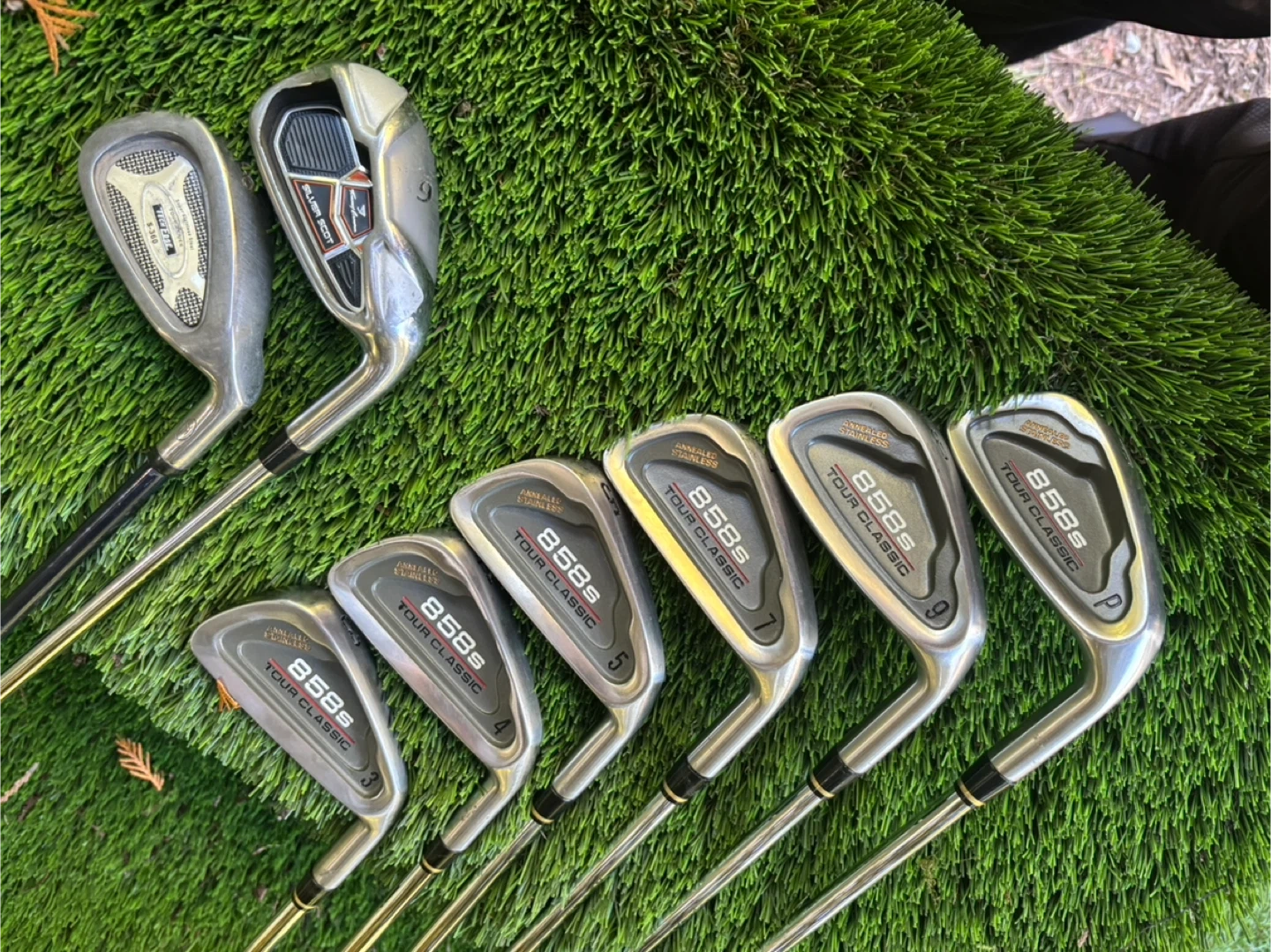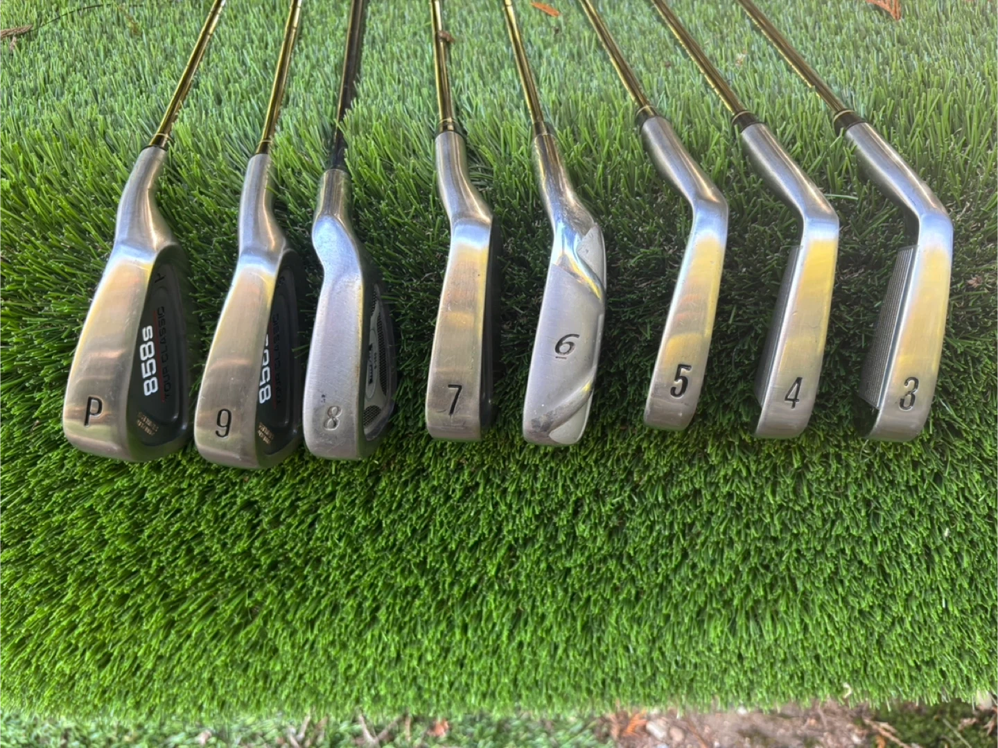 60Selling a set of Tommy Armour golf clubs. Includes the 858s Tour Classic irons. numbered 3 through 9 and P. Stiff steel shafts with excellent grips ready to play. Great for beginner’s looking to upgrade their golf game! 6 & 8 irons of similar kind to complete the 825S like new set.