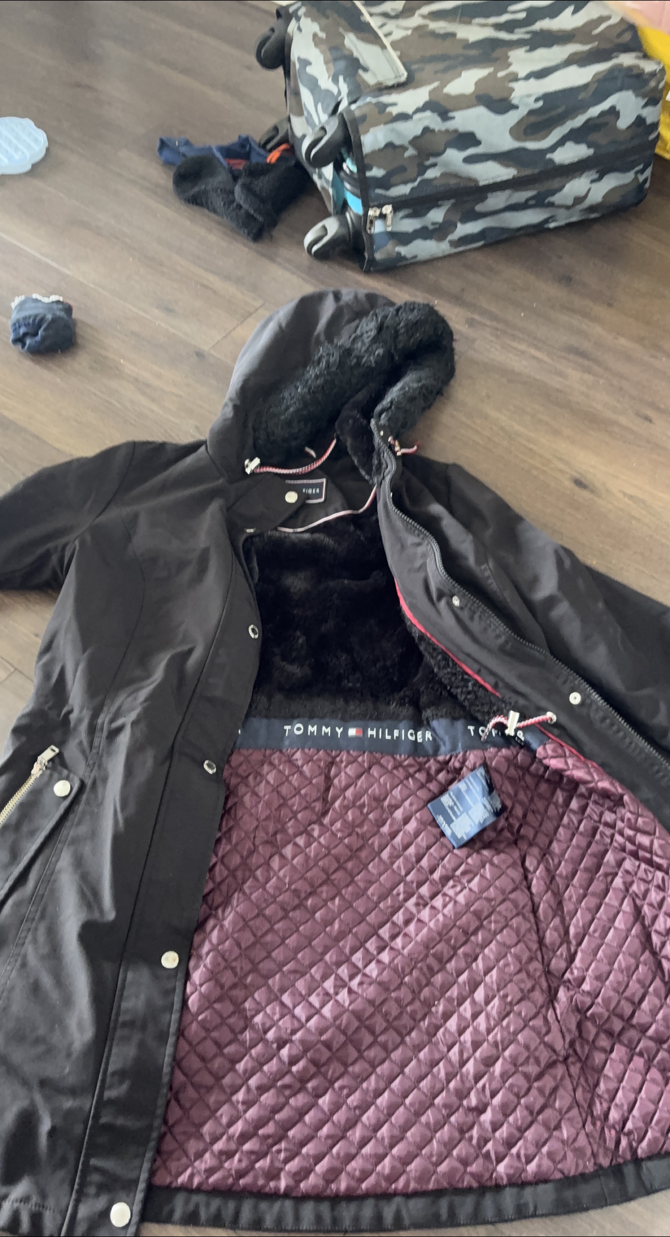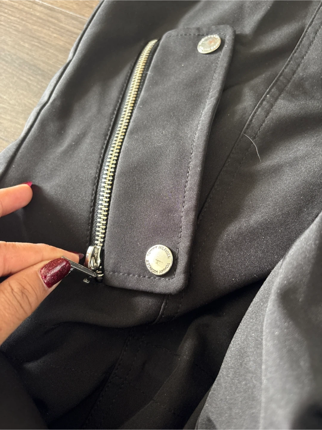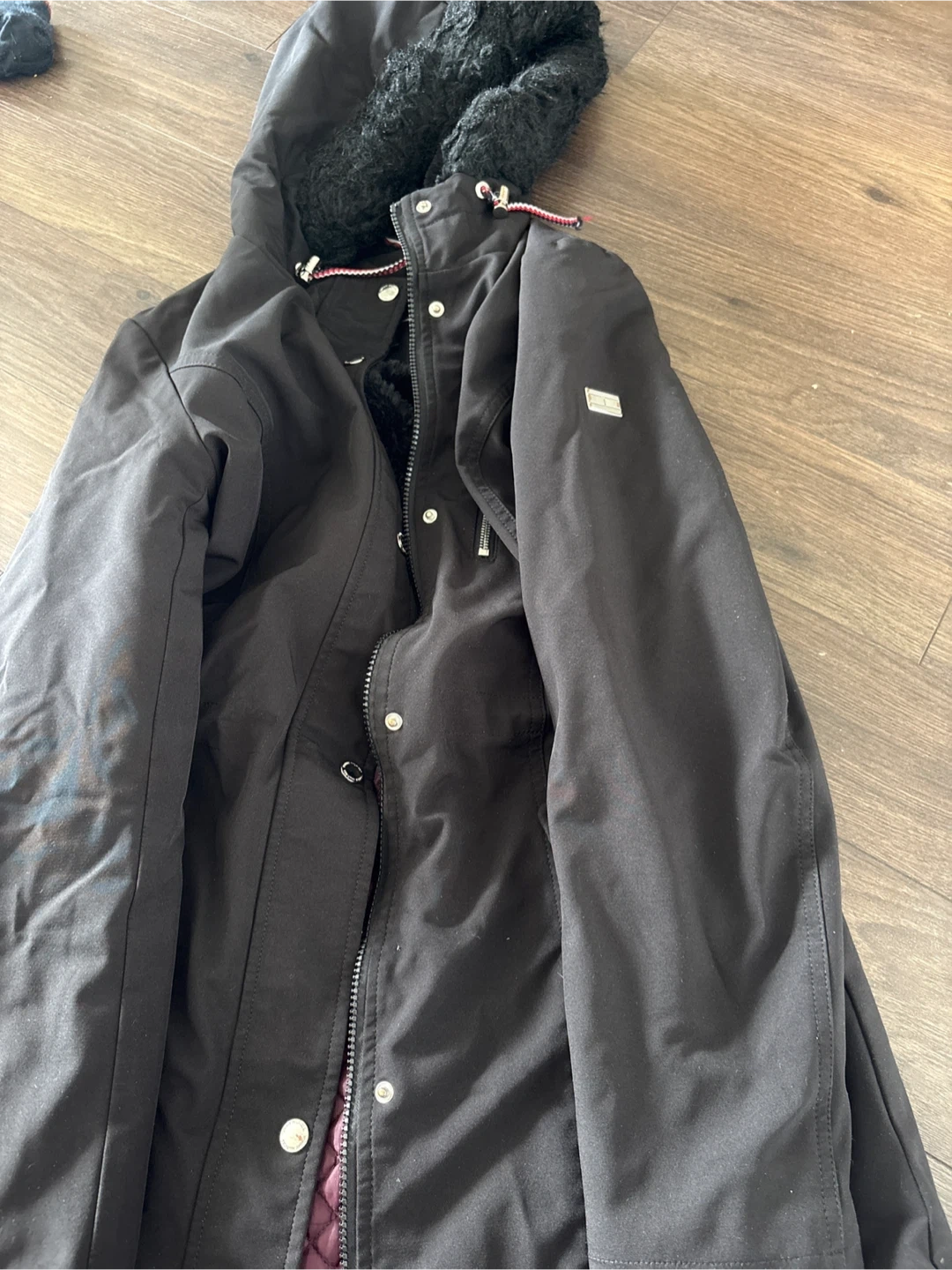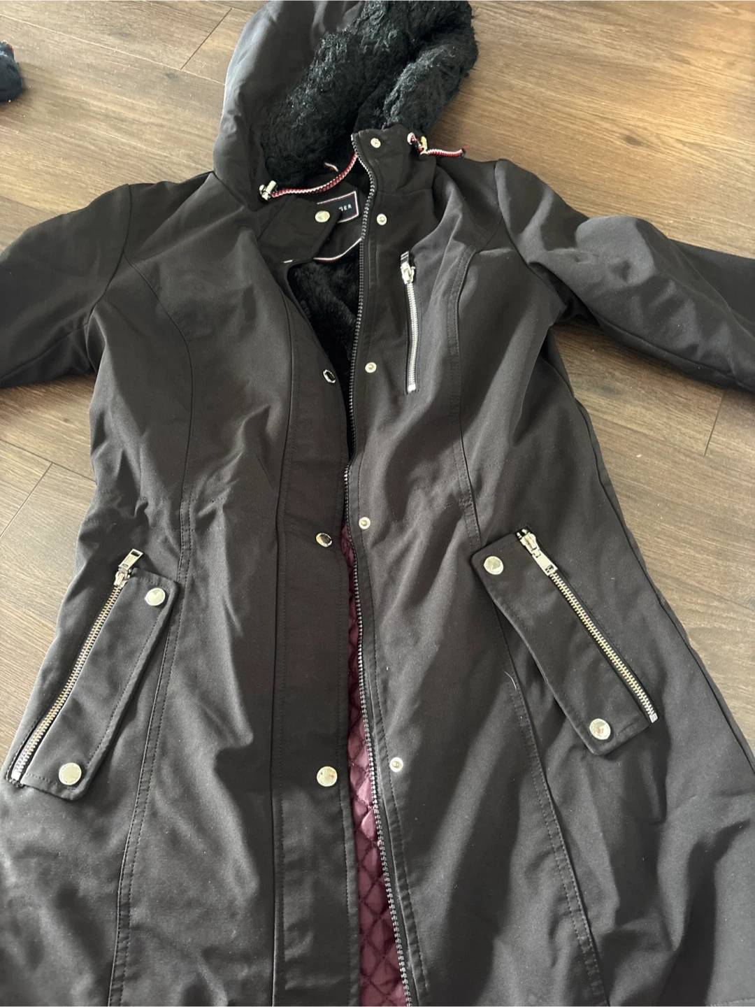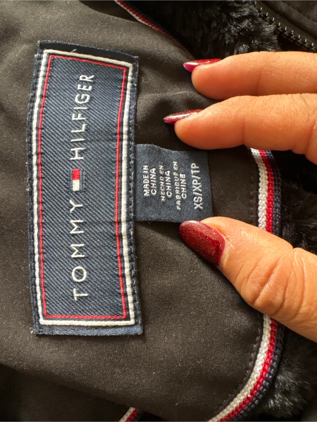 Tommy Hilfiger black winter coat in size XS. It has a faux fur hood and a quilted lining. Perfect for staying warm this winter!