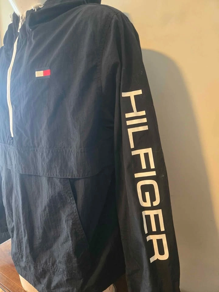 Tommy Hilfiger Blue Taslan Retro 1/2 Zip Hooded Wind Jacket Hoodie Men's XL. Let me know if you're interested!