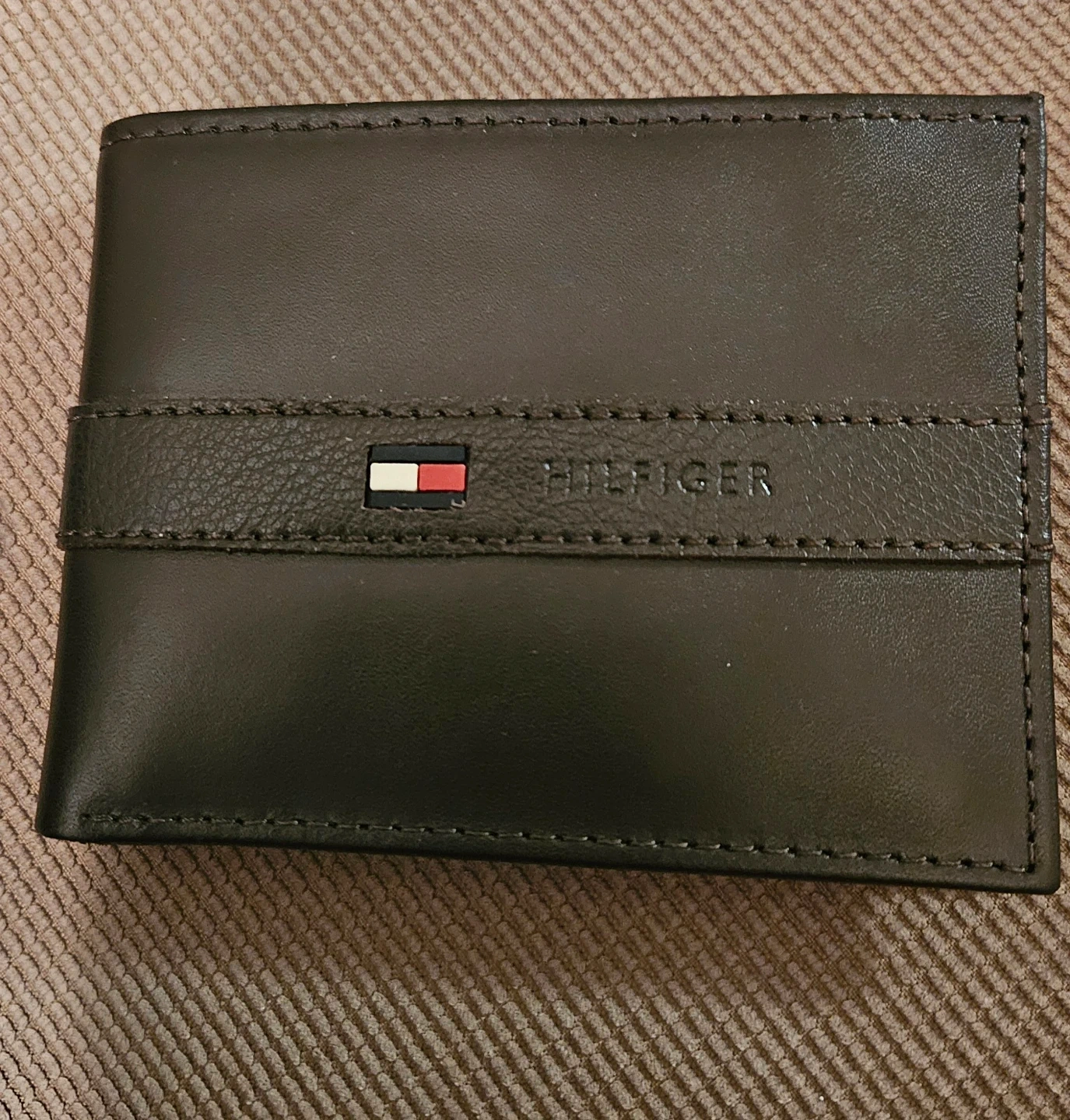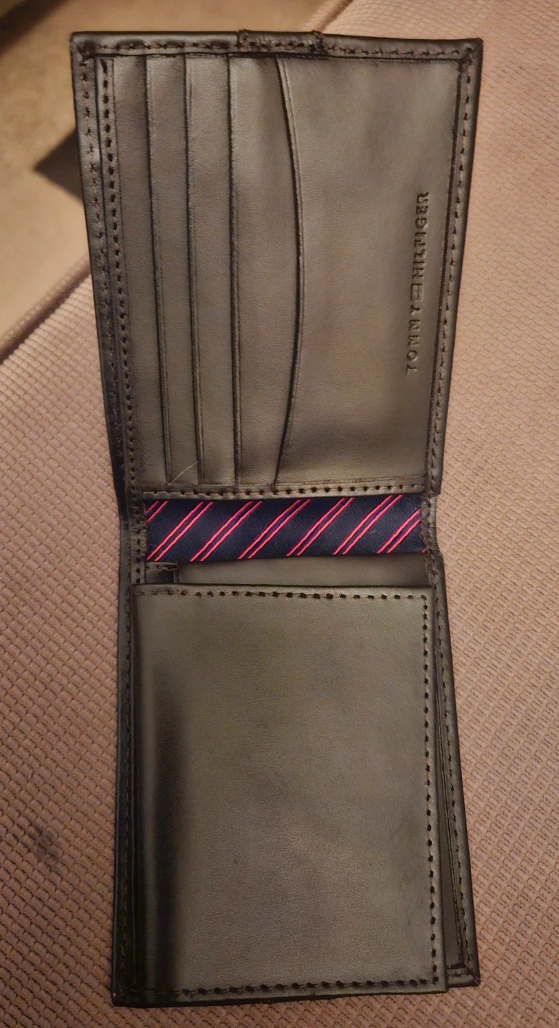 83Here's a newTommy Hilfiger wallet! It's a classic brown leather with a stylish striped fabric accent inside. Perfect for keeping your cards and cash organized.