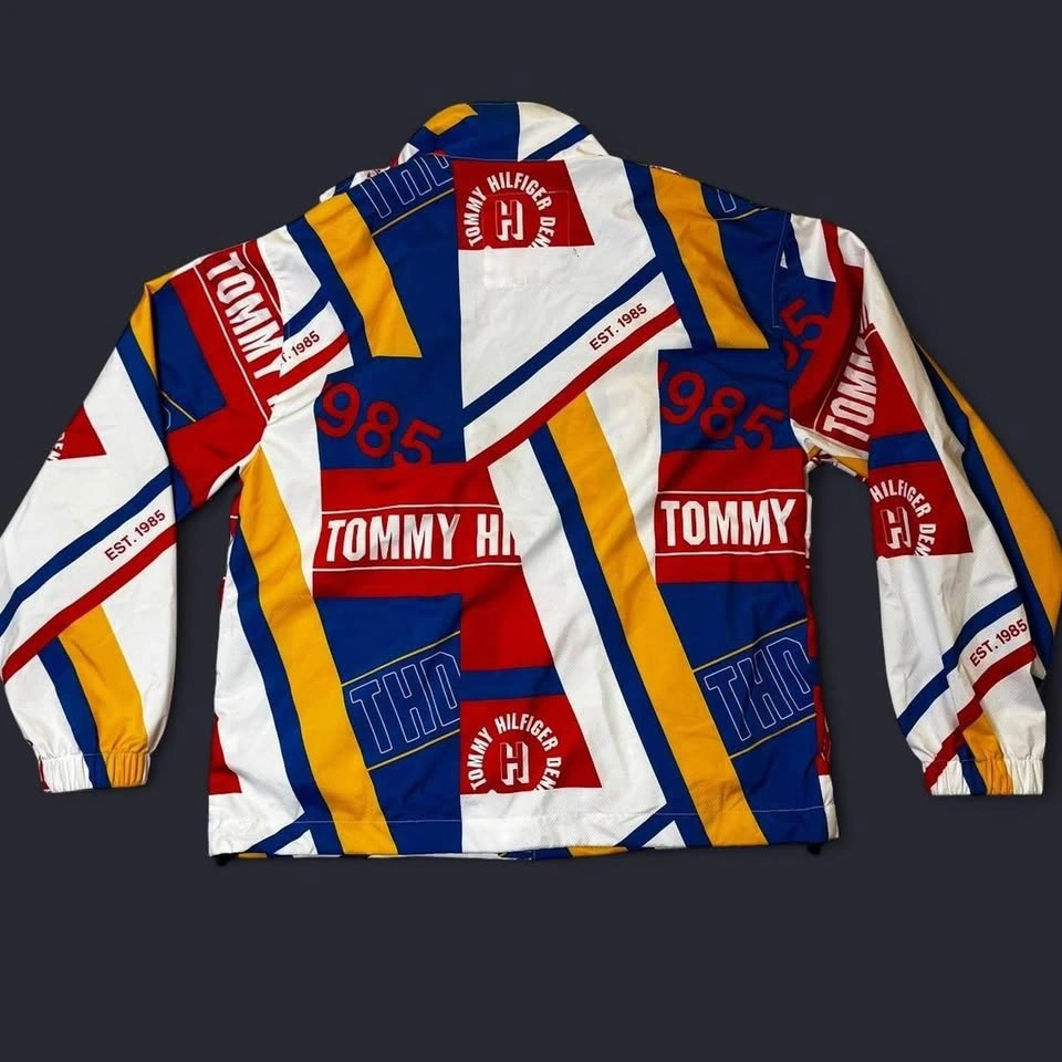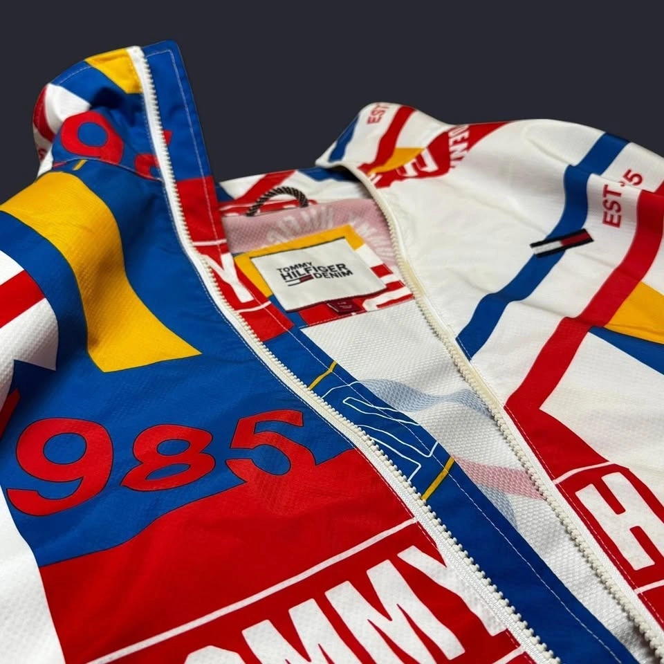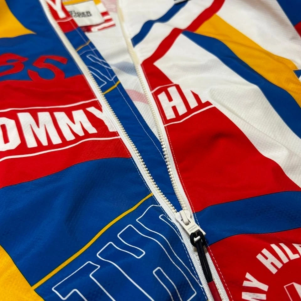 65Bold and stylish Tommy Hilfiger windbreaker with an all-over graphic print. Lightweight and breathable with a full-zip front and elastic cuffs.
