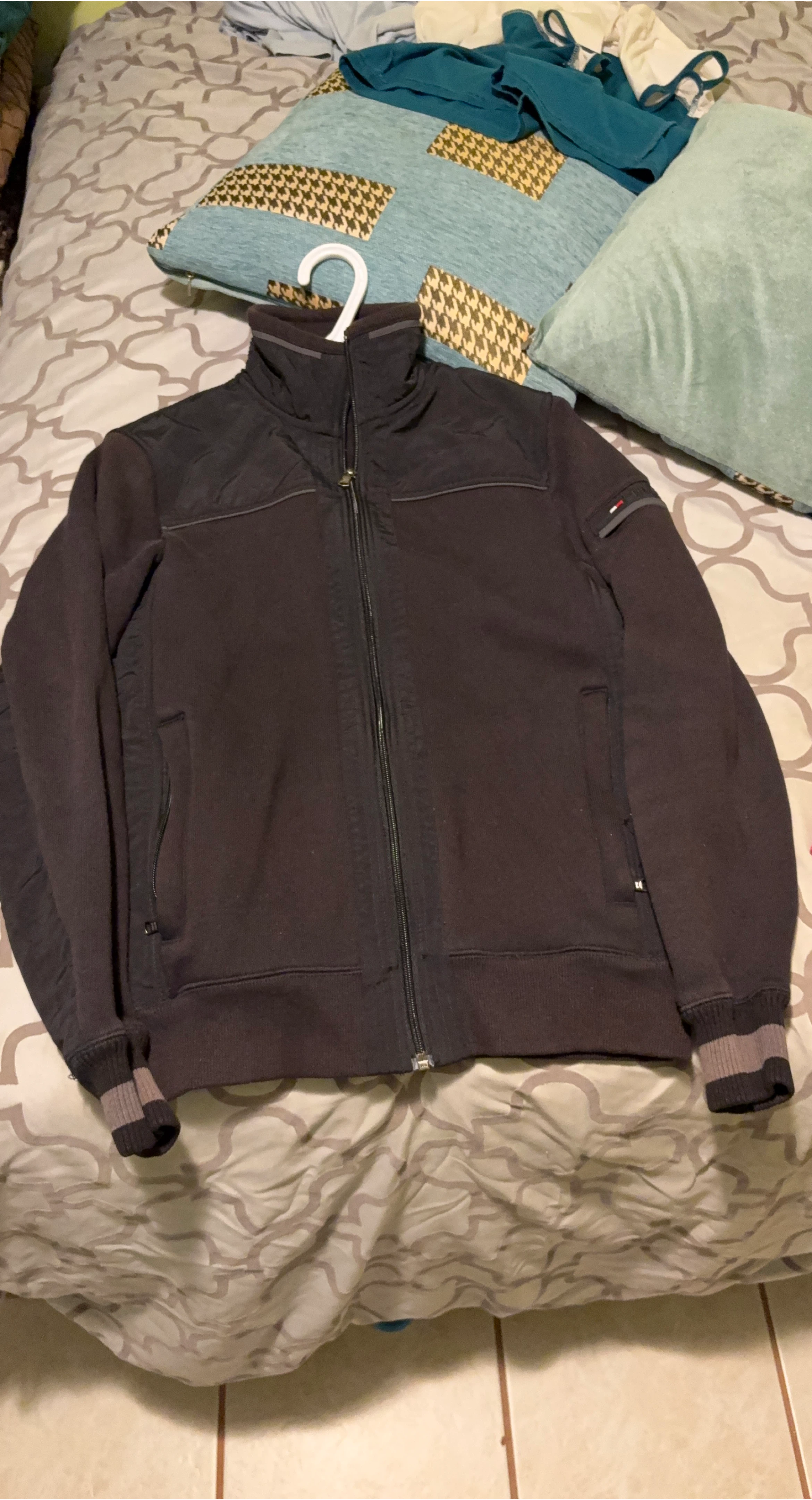 Here's a Tommy Hilfiger full zip jacket in great condition! It's a stylish and comfortable jacket perfect for layering or wearing on its own.