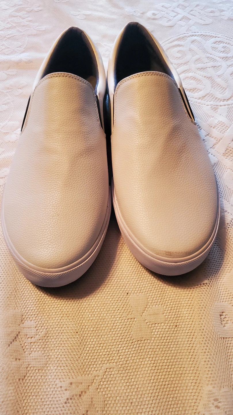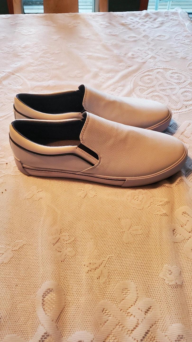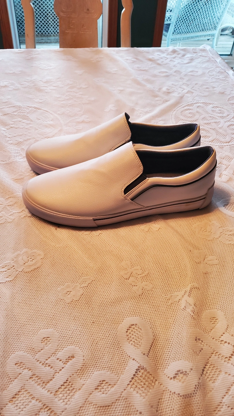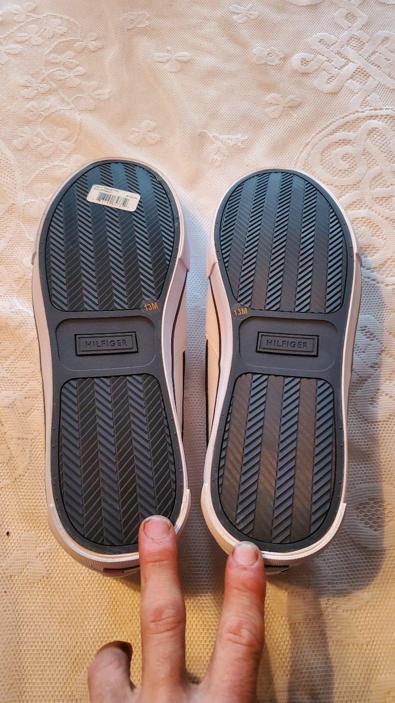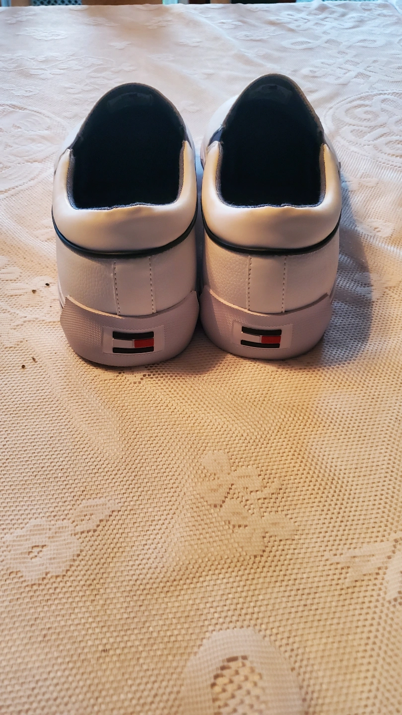 Men's white leather slip-on sneakers. Size 13M. Tommy Hilfiger brand. Clean and in good condition. Never worn. Pick up Dunmore or can drop off in Medicine Hat or surrounding area