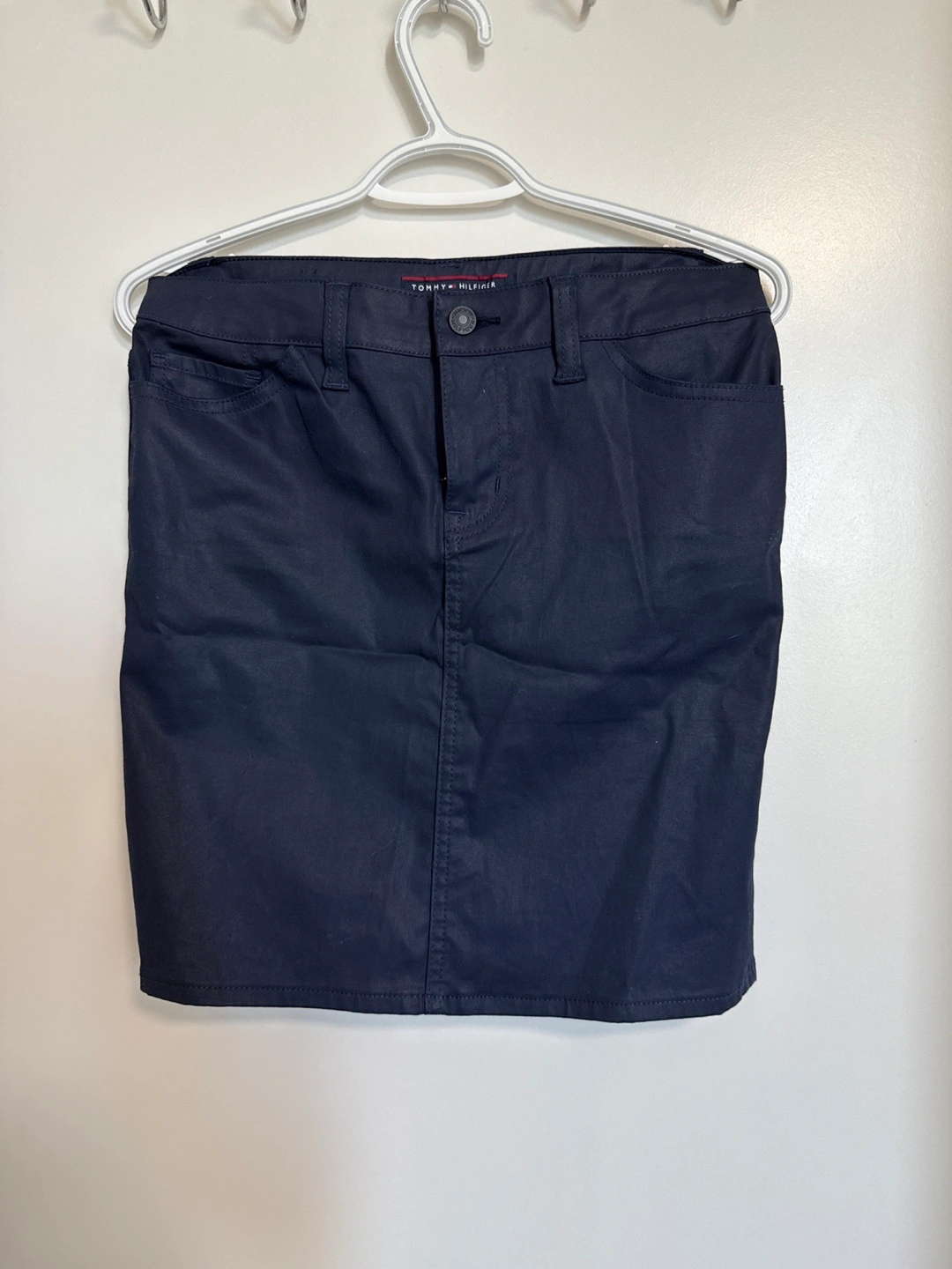 Here's a cute navy blue skirt from Tommy Hilfiger! It's in great condition and perfect for any casual occasion. The material feels nice and it's a stylish addition to any wardrobe