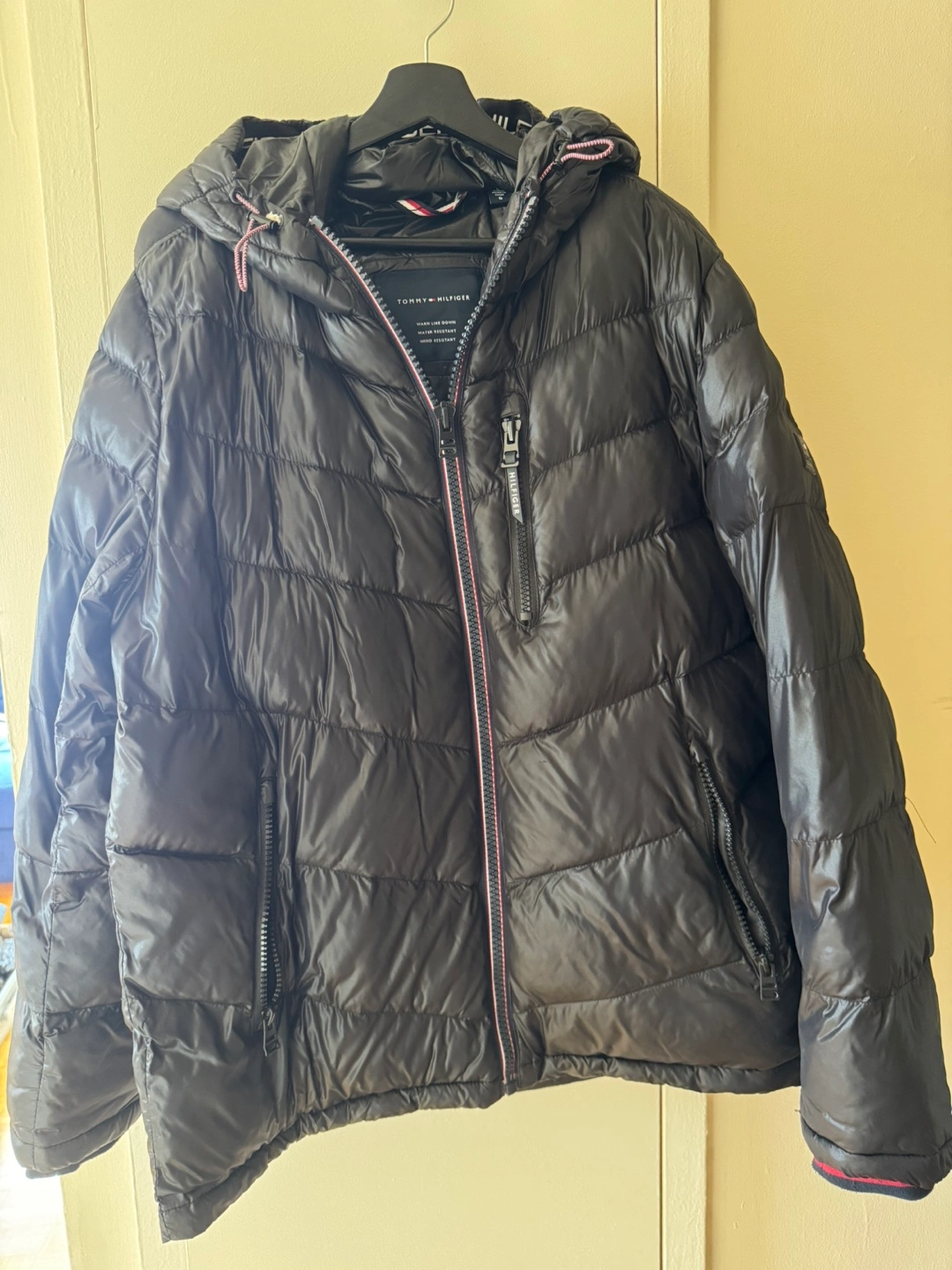 166Selling a Tommy Hilfiger puffer jacket in size L. It's black, warm like down, water resistant, and wind resistant. Perfect for the Canadian weather!