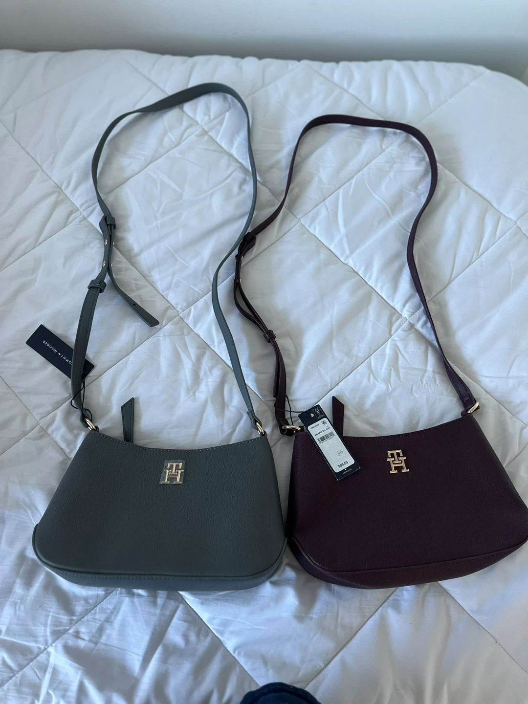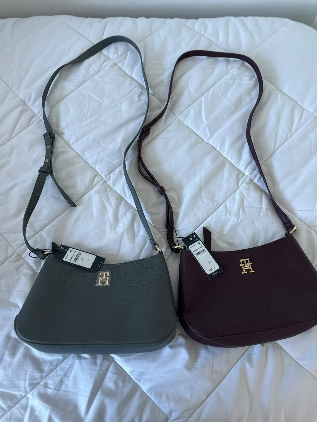 Two Tommy Hilfiger shoulder bags up for grabs! One is a lovely grey and the other is a rich burgundy colour. Each bag has the iconic Tommy Hilfiger logo.