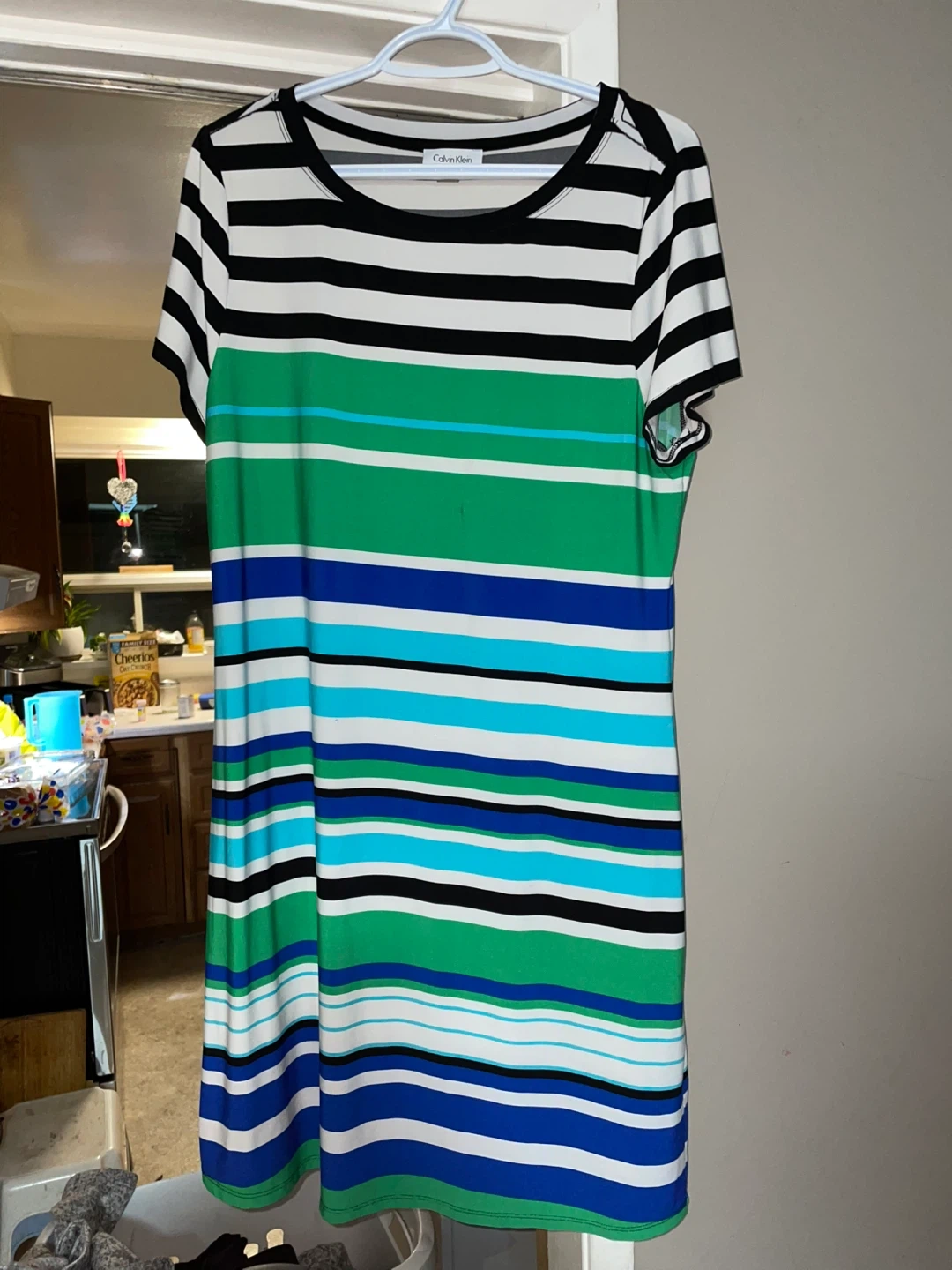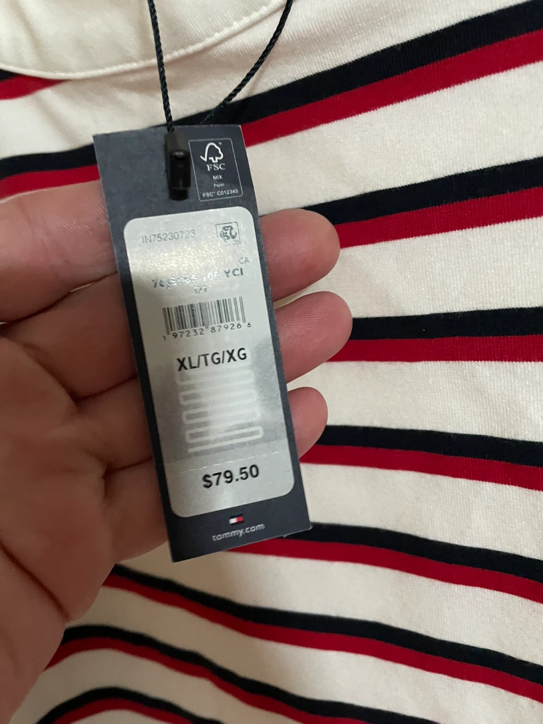 15Selling a gently used Tommy Hilfiger dress in size XL. It features a classic striped design in white, red, and black. Originally bought for $79.50!