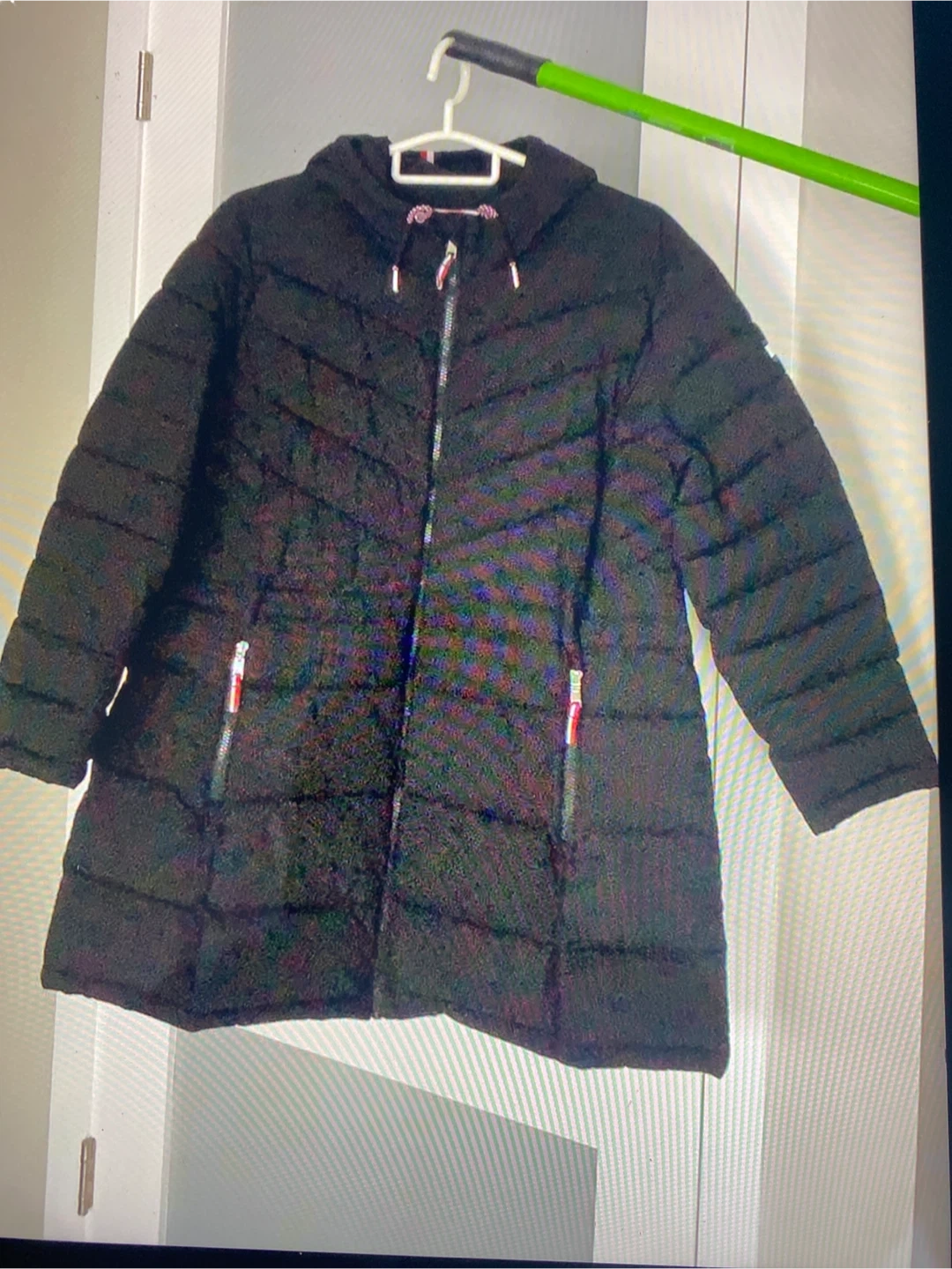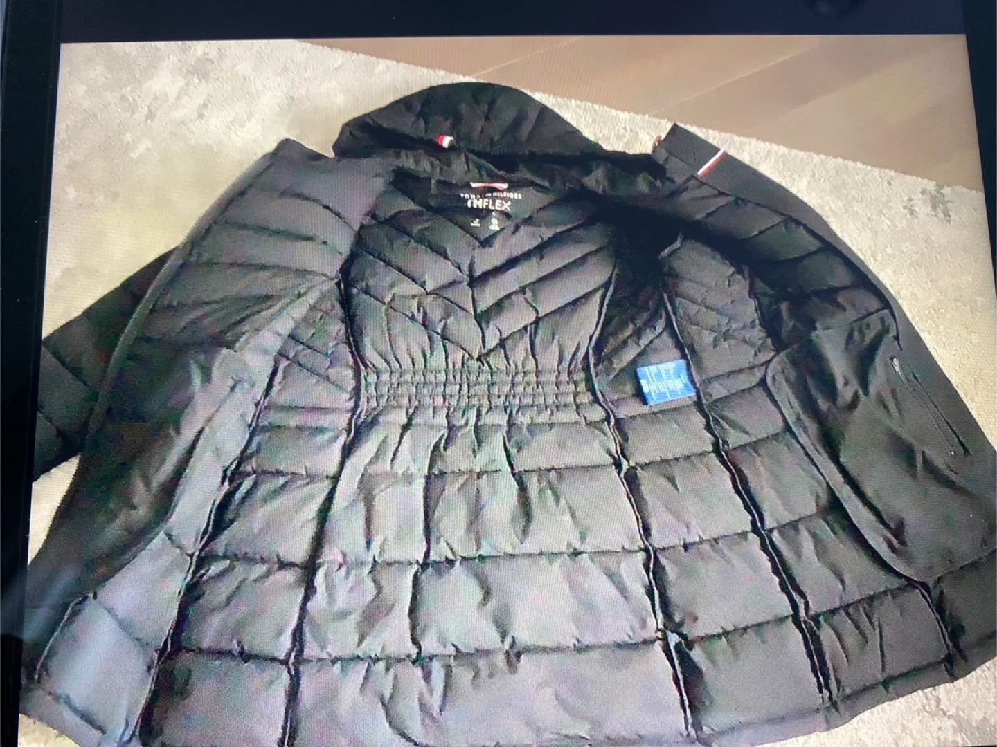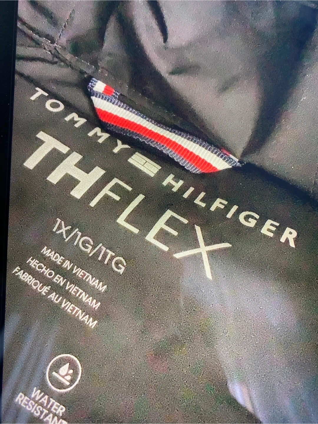 18NEW Tommy Hilfiger TH Flex puffer coat in size X-Large. This stylish black coat is water-resistant and perfect for staying warm and dry. It features a hood and a comfortable fit. Great for the Canadian weather! Retail price is $175 + tax Pick up in Rocky Ridge.