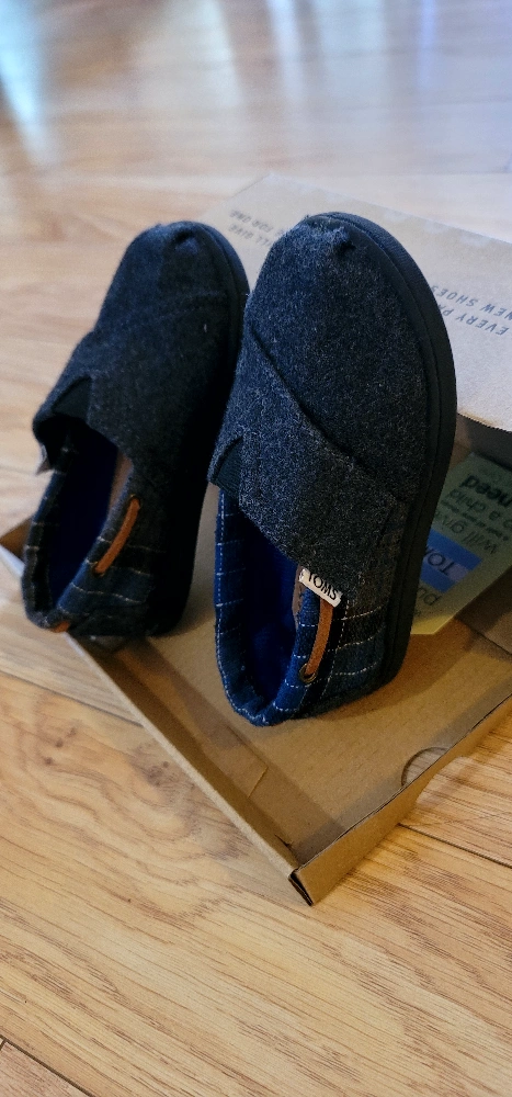 152These cute TOMS kids' shoes are in excellent condition and come with the original box! They are a size T8, perfect for toddlers. The shoes feature a stylish grey wool-like upper and a comfortable design. Great for everyday wear!