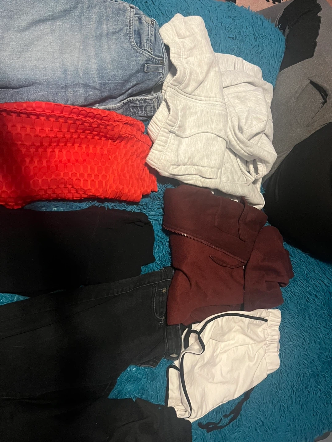 1063 small bags of women’s size s and m clothes All gently used and most name brand Also have tons of hoodies to add but not pictured
