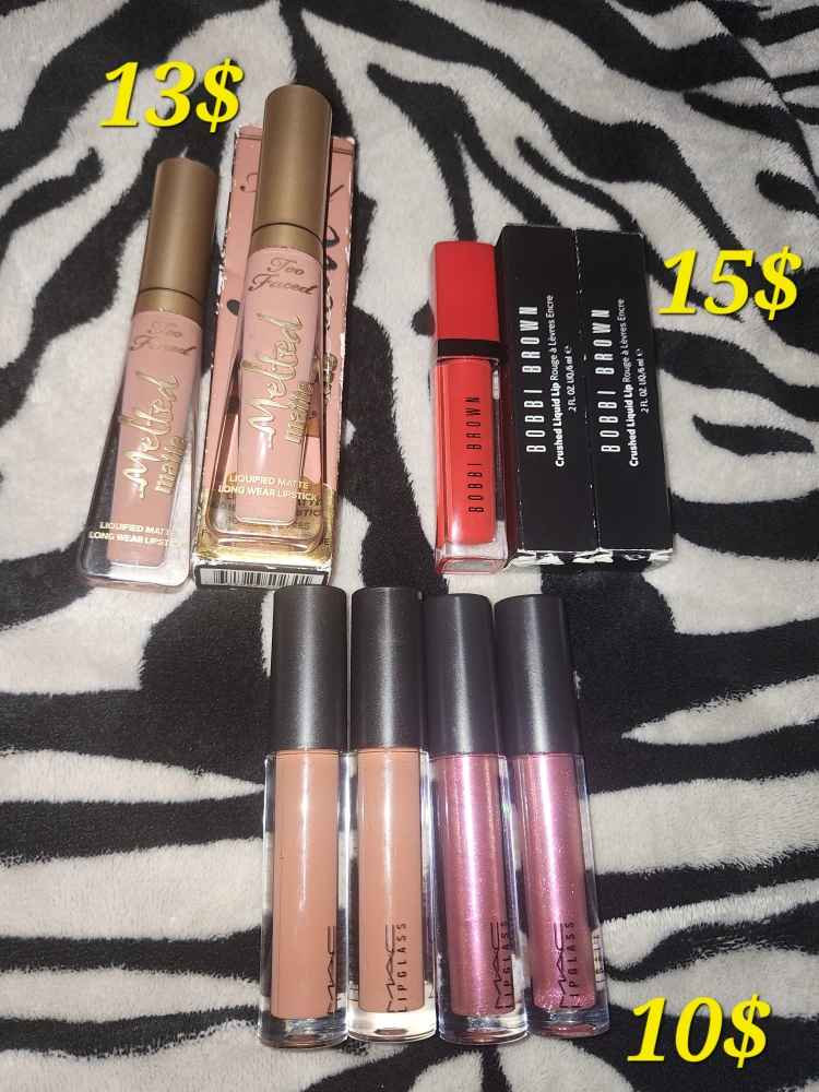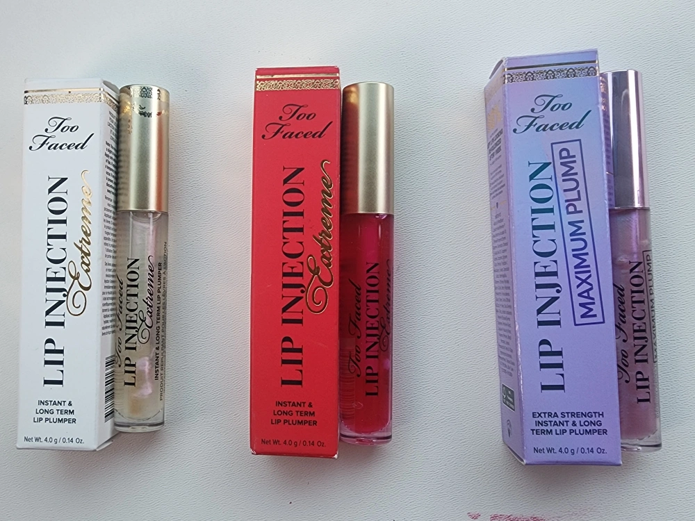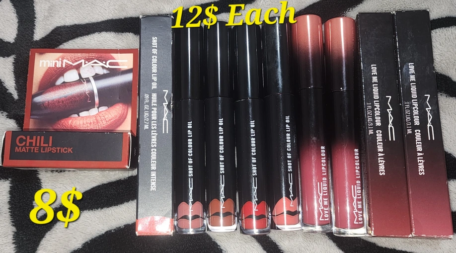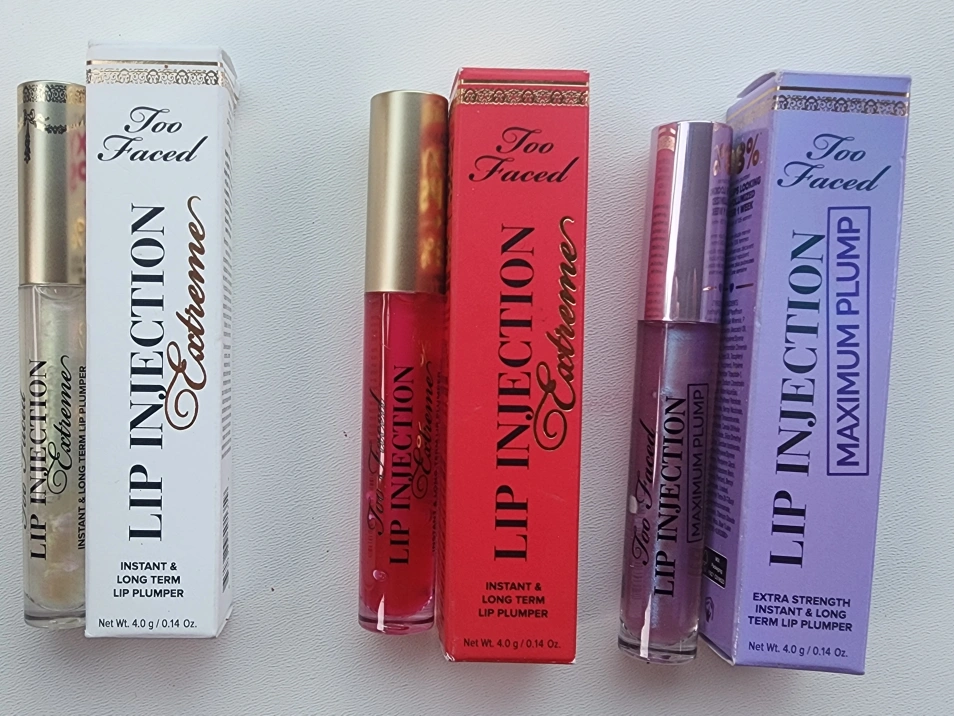 10Selling Too Faced Lip Injection Extreme and Maximum Plump lip plumpers, as well as MAC Love Me Liquid Lipcolour and Shot of Colour Lip Oil. Each product is brand new and comes in its original box. - Too Faced Lip Injection: Instant & Long Term Lip Plumper, Net wt. 4.0 g / 0.14 oz - MAC Love Me Liquid Lipcolour: 3.1 ml / 0.1 US fl oz - MAC Shot of Colour Lip Oil: Huile Pour Les Levres Couleur Intense, 2.7 ml / .09 fl oz US liq.