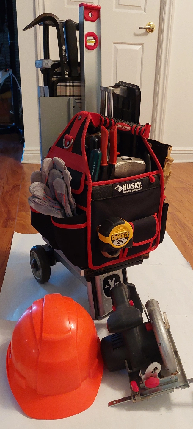 Selling a tools and bag on wheels. It's in good condition and ready to haul all your tools to the job site! It has multiple pockets and compartments to keep everything organized and easily accessible. The wheels make it easy to transport, even when fully loaded