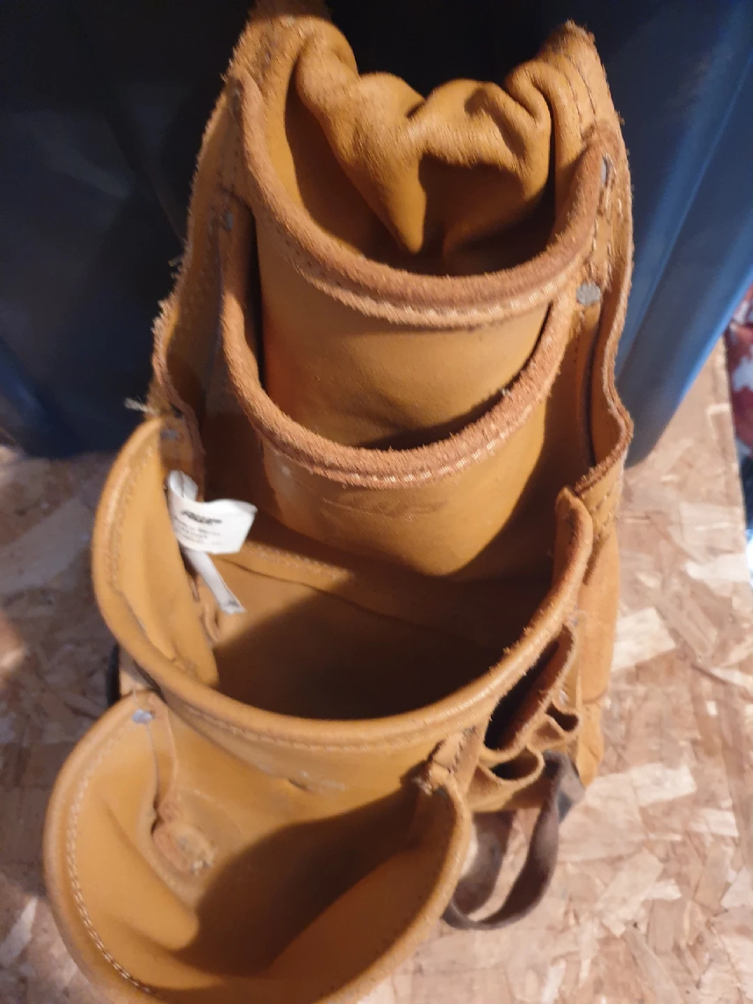 This used tool pouch is the perfect addition to any tradesperson's gear, featuring durable leather construction and multiple pockets for optimal organization. It's a reliable companion for any job, big or small. Here are some of the features: * Durable leather material * Multiple pockets for various tools * Comfortable fit for all-day use In the whimsical world of tools, this belt is like a trusty sidekick, always ready for action! If you're seeing this ad, you bet your bottom dollar it's still up for grabs! Comparable toolbelts sell for about $60 on Kijiji. This one is priced to sell. $25.00 for large one $5.00 for small. Perfect for tape measure
