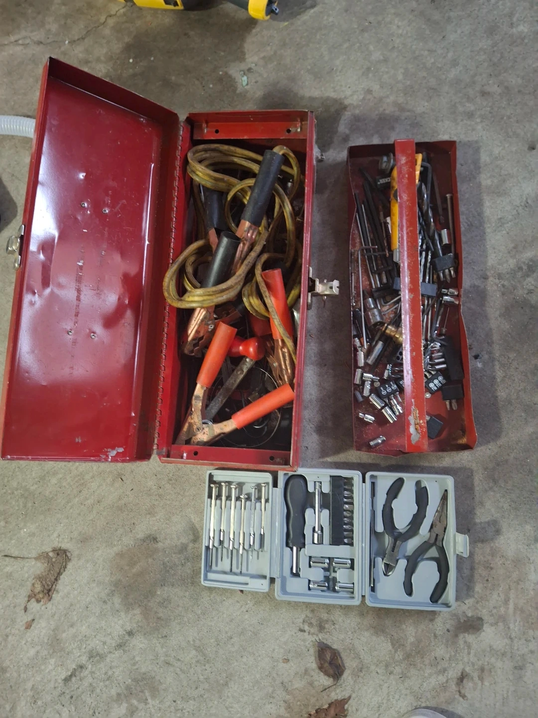 87Selling a toolbox filled with various tools! Includes jumper cables, screwdrivers, pliers, and more. Perfect for DIY projects or starting your tool collection