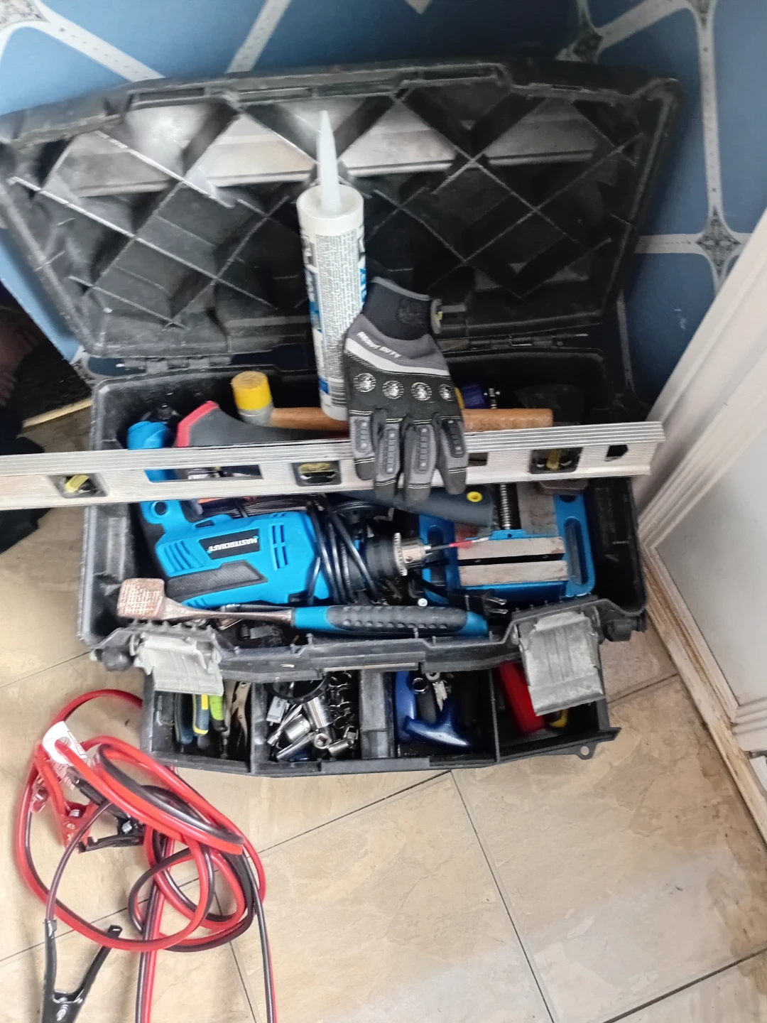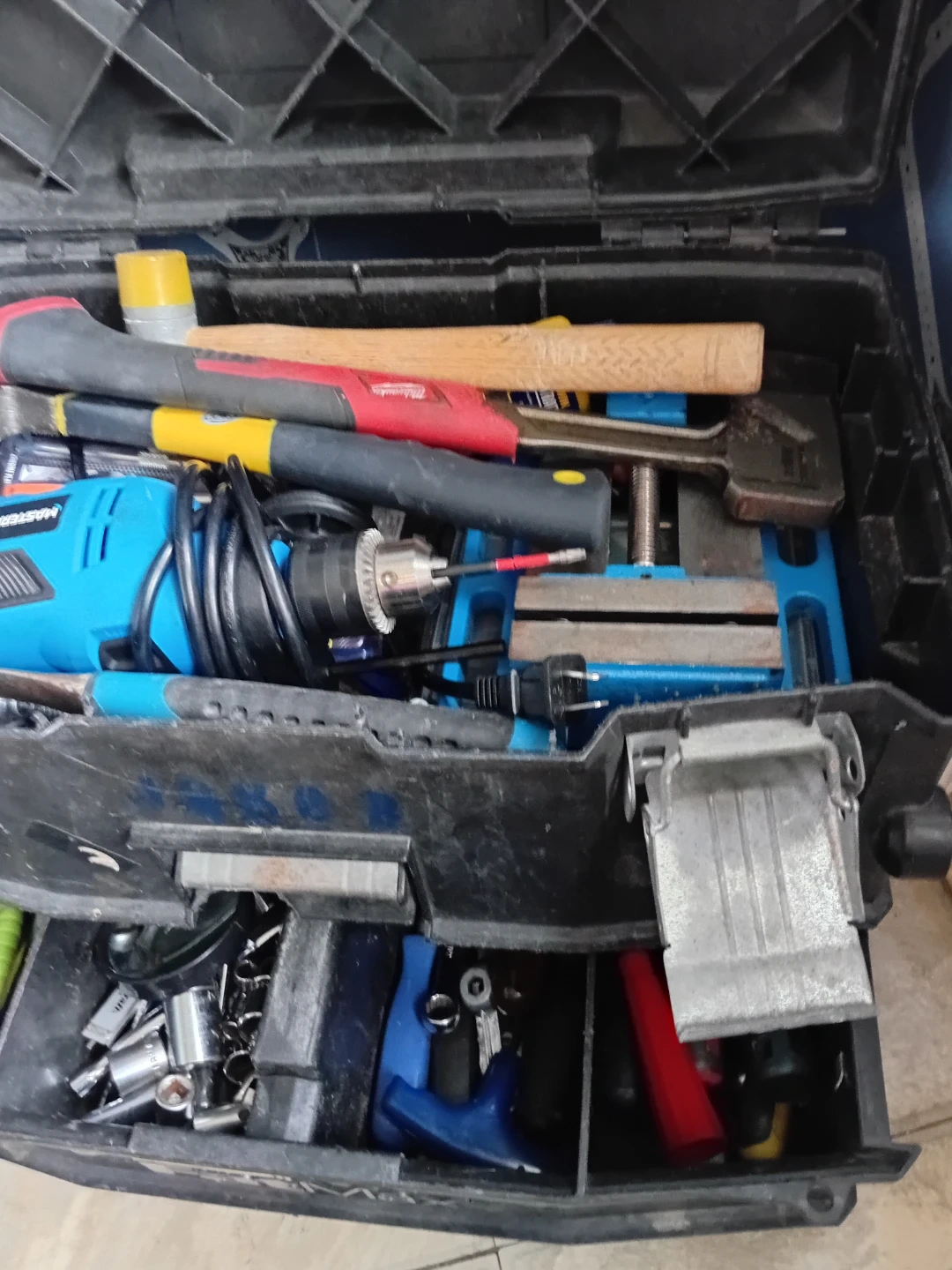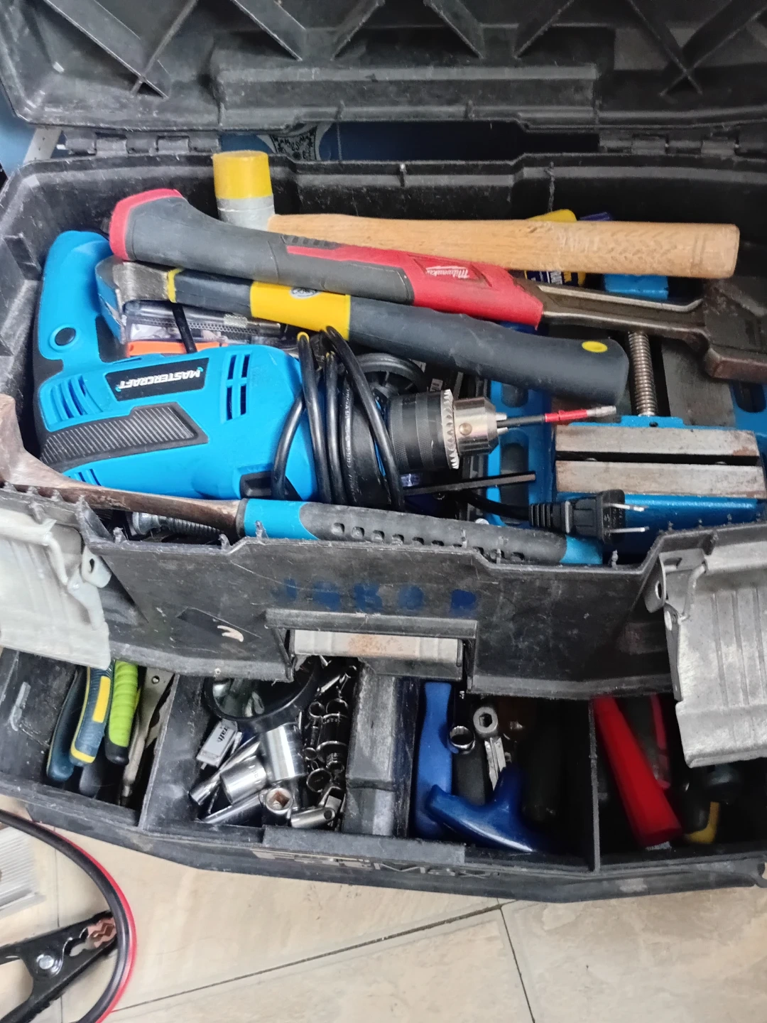 10Toolbox filled with various tools, including a Mastercraft drill. Great for DIY projects or starting your tool collection! Also including a level and some jumper cables and a new can of filler looking to get rid of these items for the cost of $30 I am downsizing and need to sell items that I am no longer going to be able to take with me on this move