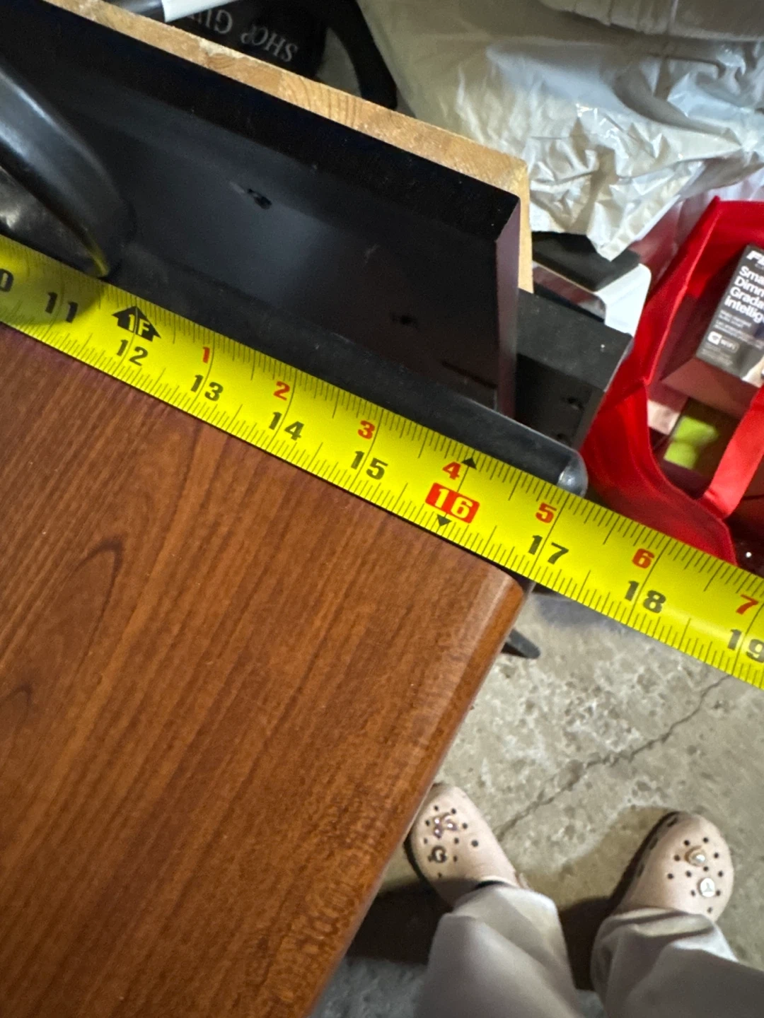 This baker's rack features three wooden shelves and a black metal frame. The overall dimensions are approximately 31 inches wide and 64 inches tall. It's a handy piece for kitchen or pantry storage!