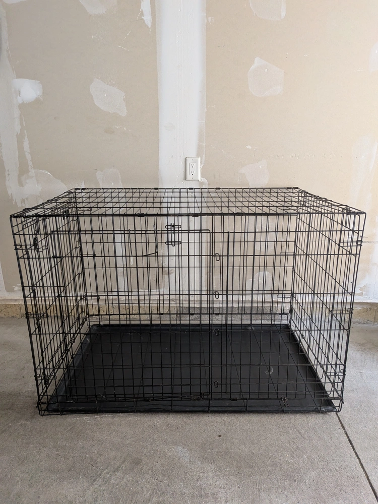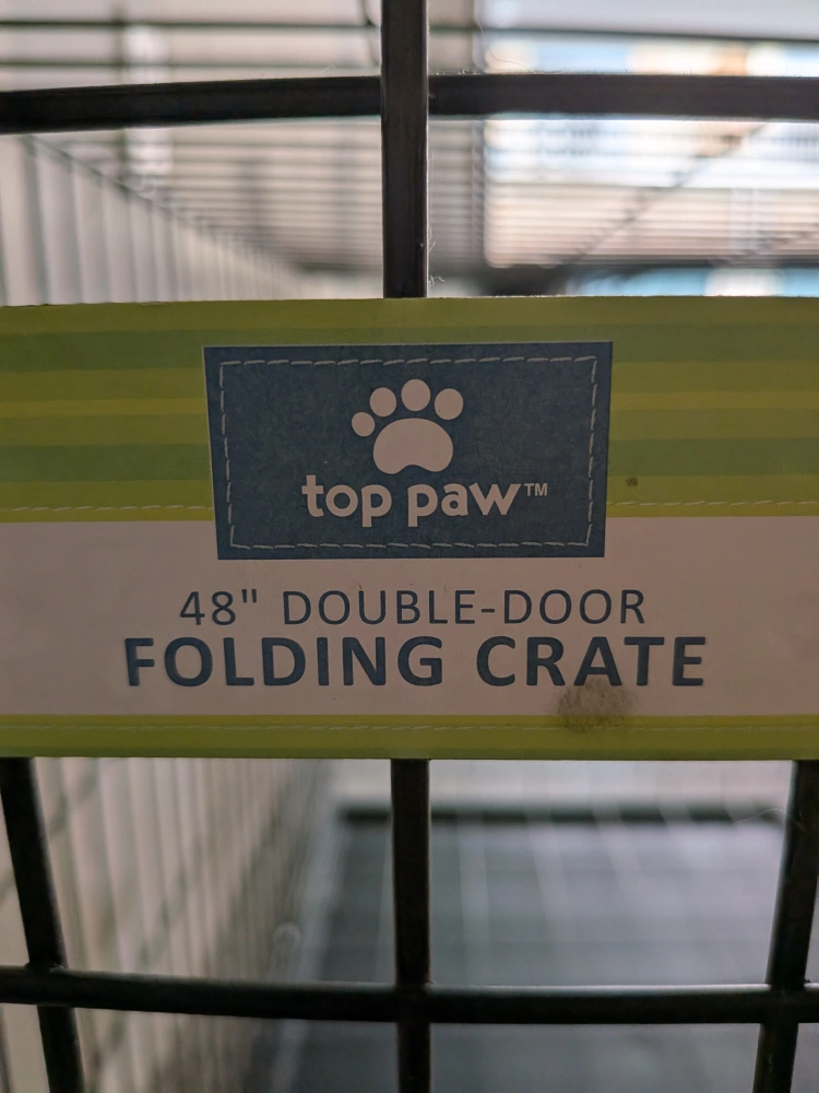 Selling a Top Paw 48" double-door folding crate! It's in great condition and ready for a new home. Perfect for dogs of all sizes, it's easy to fold and store when not in use. This crate offers a safe and comfortable space for your furry friend 30" x 48" x 32"