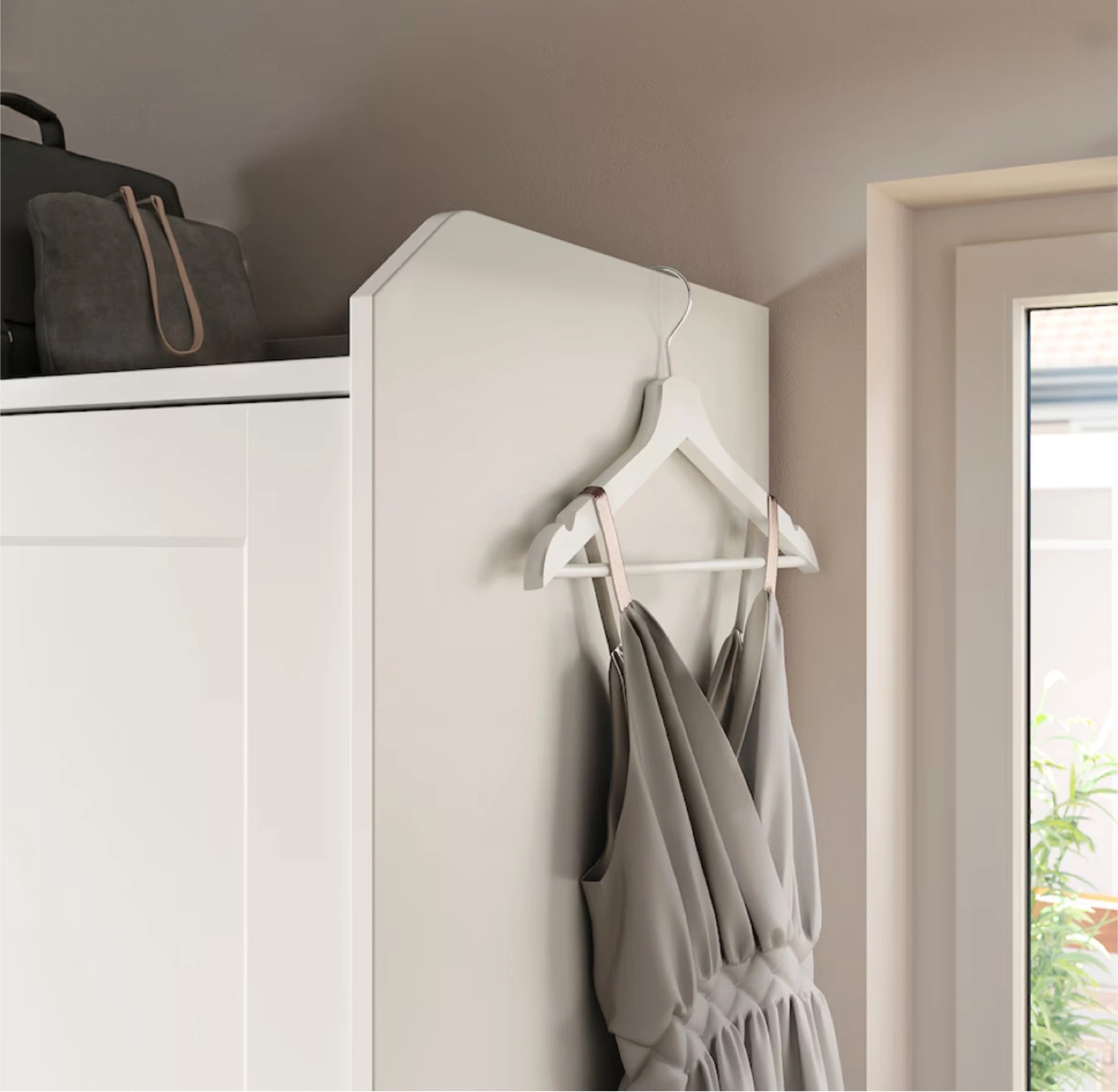 White wardrobe with sliding doors. Plenty of storage space. Great for bedrooms or entryways. Assembled and ready to use.