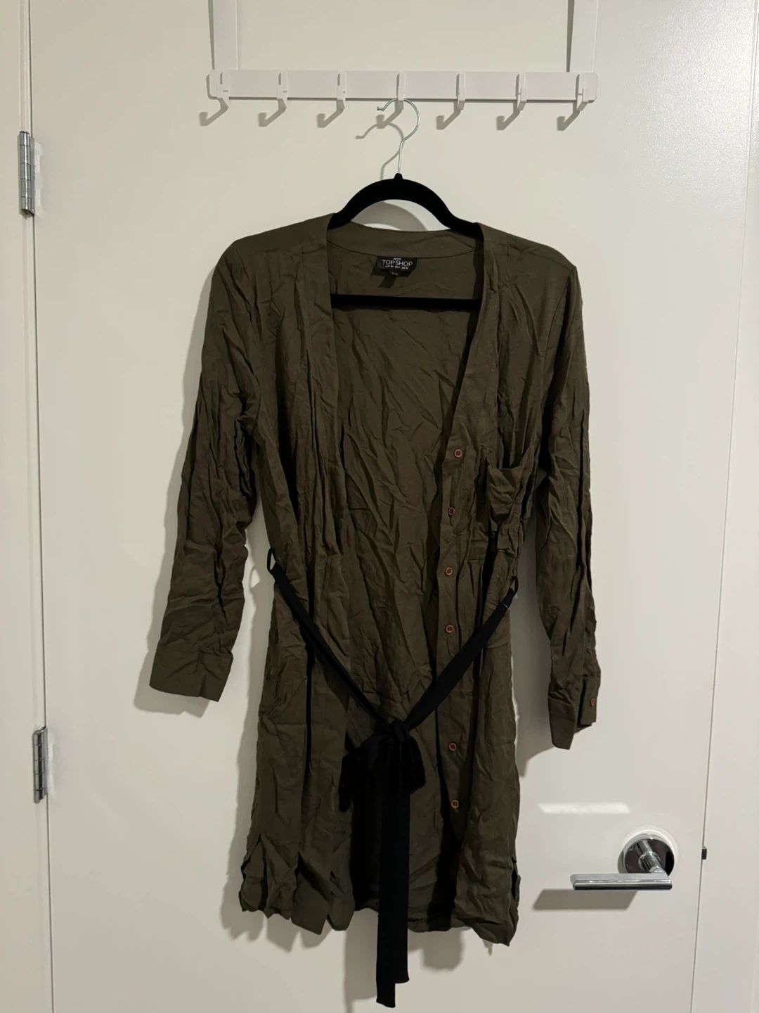 25Selling a Topshop Petite dress in a lovely olive green colour. It's a size US 6 (EUR 38, UK 10). The dress comes with a stylish black belt to cinch the waist. It is in great condition!