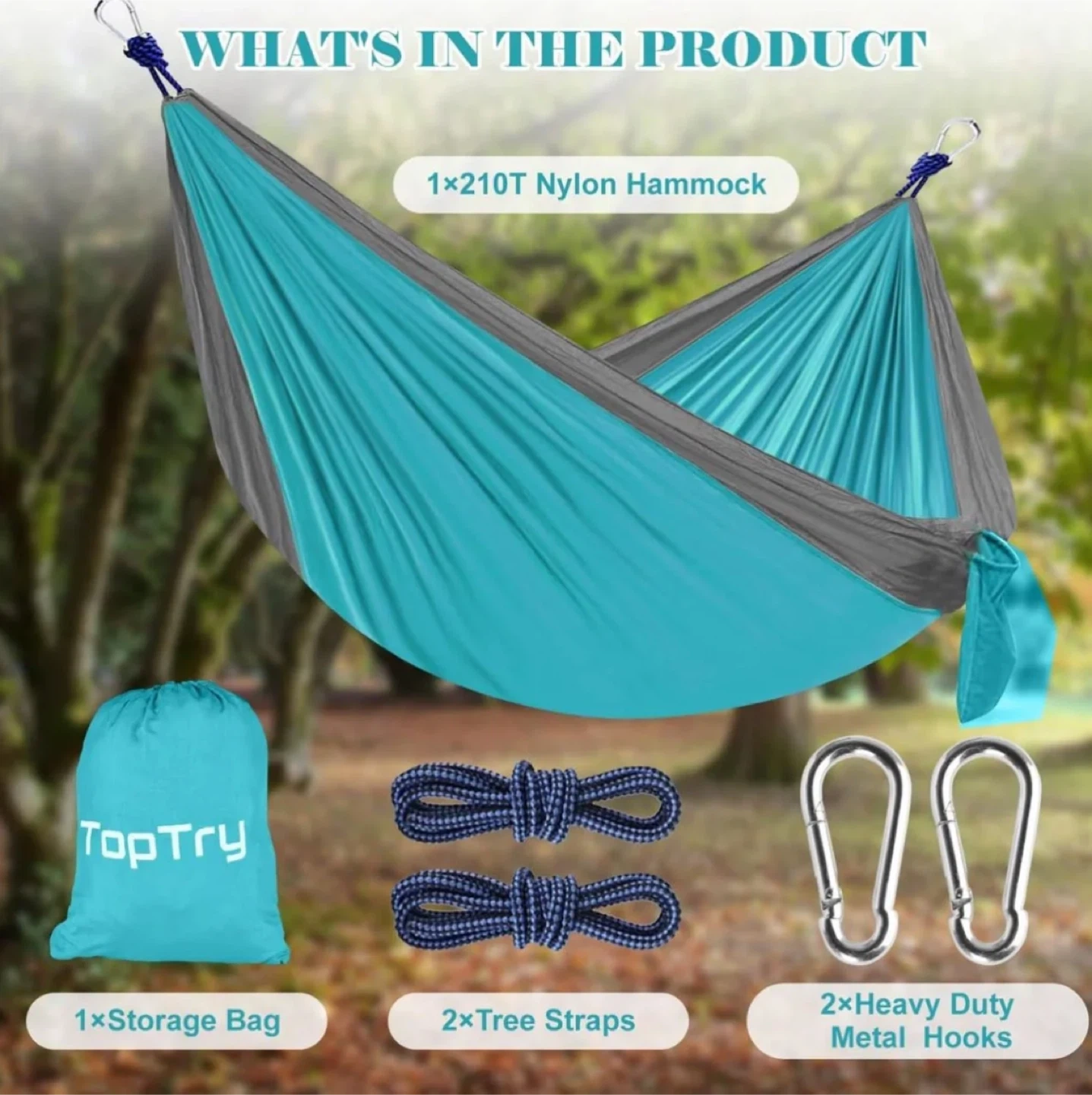 10I’m clearing out my storage locker and parting ways with some good stuff and selling TopTory hammock, used 3 times! It's made of durable nylon (fit two people) and comes with everything you need to set it up: - Hammock - Storage bag - Tree straps - Heavy-duty metal hooks Pickup at XYZ Storage at 207 Weston road