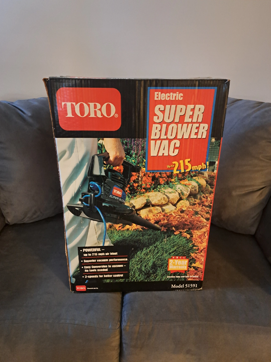 62Selling a Toro Electric Super Blower Vac, model 51591. It's powerful, blowing up to 215 mph! It also has superior vacuum performance and easy conversion to vacuum, also has bag , no tools needed. Plus, it has 2-speeds for better control. The box is included!