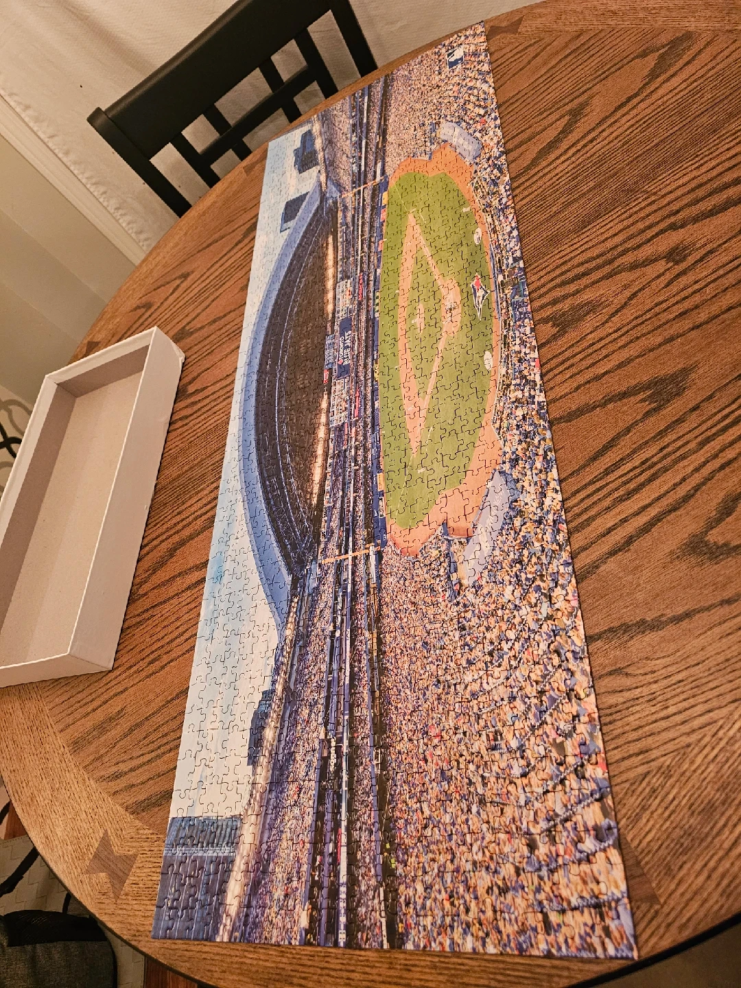70Get ready to piece together this awesome Toronto Blue Jays panoramic puzzle! It's a 1000-piece puzzle, perfect for any Jays fan looking for a fun challenge. The puzzle showcases a stunning view of the Rogers Centre. Box included!