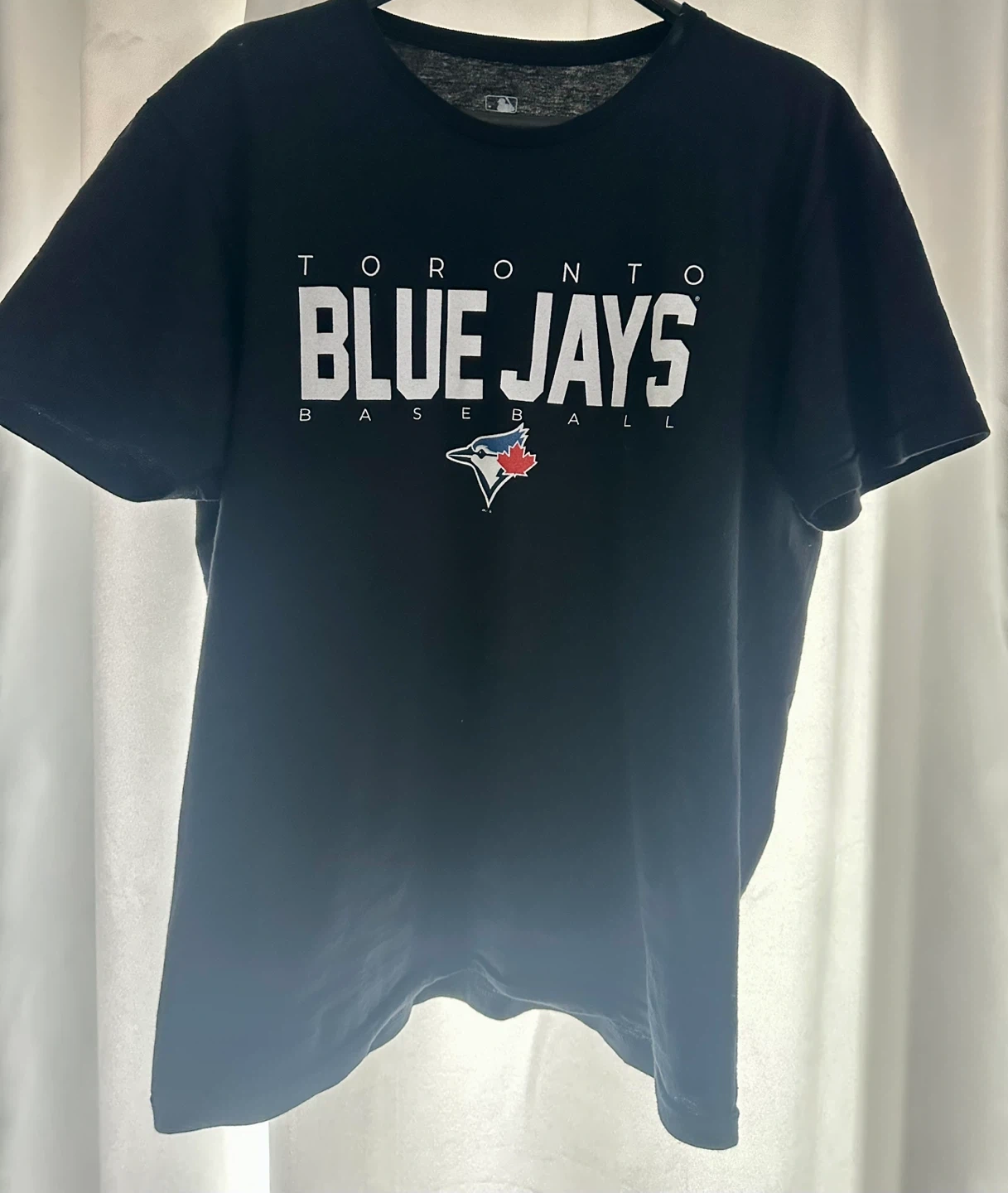 527Selling a Toronto Blue Jays baseball t-shirt in size medium! It's in great condition and made of 100% cotton, so it's super comfy. Perfect for showing your team spirit at the game or just around town