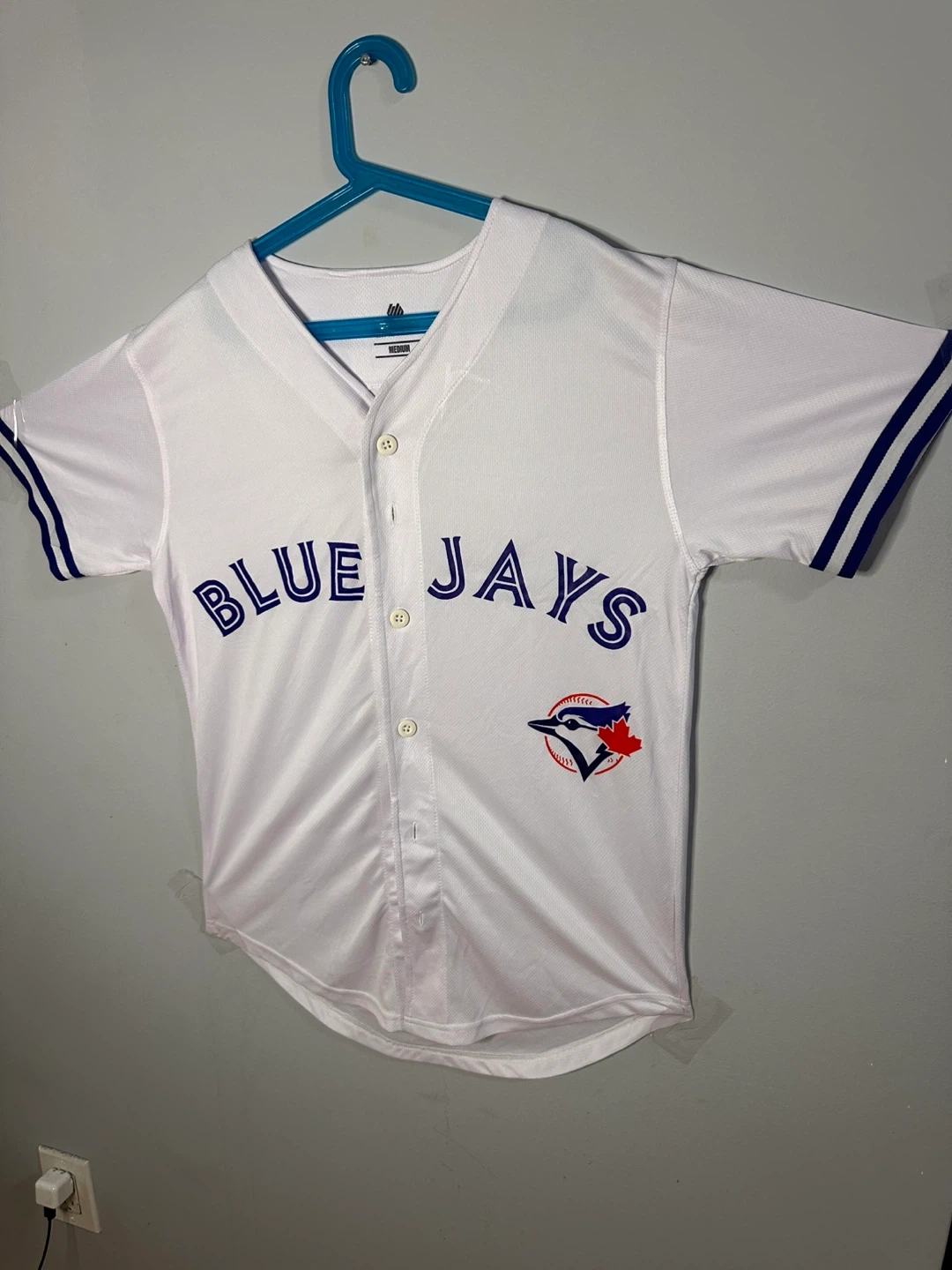 10Selling a Toronto Blue Jays jersey and a t-shirt! Both are in great condition and perfect for showing your team spirit. The jersey is white with blue lettering, and the t-shirt is blue with the Toronto Blue Jays logo