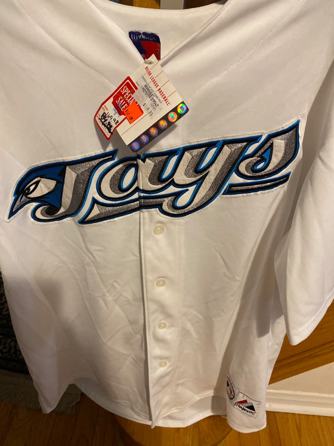 10Selling a Toronto Blue Jays baseball jersey by Majestic! The jersey is white with the Blue Jays logo on the front. The original price was $169.93