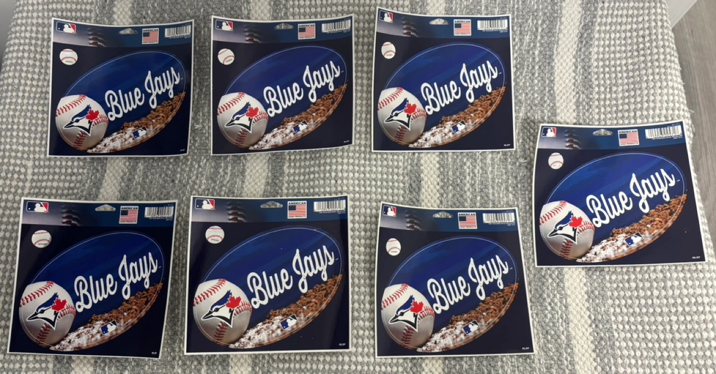Selling QTY 7 of Toronto Blue Jays MLB stickers! They're perfect for showing off your team spirit on your laptop, water bottle, or anywhere else you want to stick them. Go Jays! Pickup only