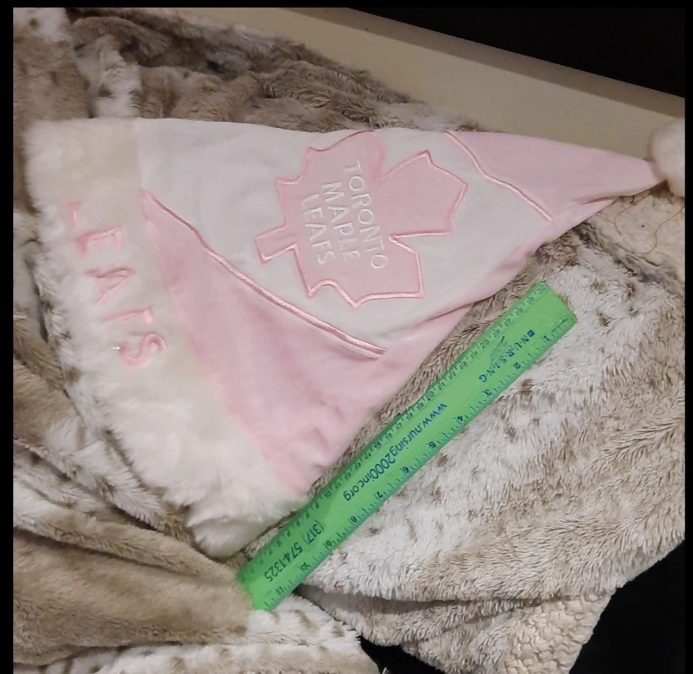 222Get ready for the holidays with this Toronto Maple Leafs Santa hat! It's made by Forever Collectibles NHL, features the team logo in pink on a white and pink hat with a fluffy white trim. Perfect for any Leafs fan! Gently displayed last Christmas ๐