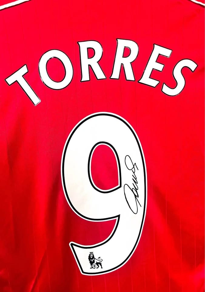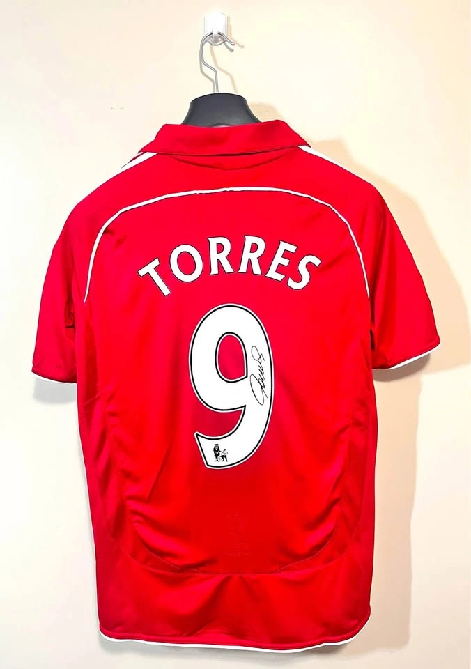 Signed TORRES #9 Liverpool Home short sleeve 2007/08 Retro + signature Premier League patch size L. A Collectible Look Without the Price Tag Now you can own a stunning collectible jersey featuring a high-quality PRINTED signature. This is a perfect, affordable display piece for any collection, office, or fan cave. The signature is a duplicated PRINT taken directly from a hand-signed original jersey, giving you the amazing visual appeal of an authenticated piece at a fraction of the cost. Jersey Features & Condition • Features all full patches for an authentic look. • New, excellent condition—ready to display right out of the box. Why Choose a Printed Signature? ✨ Get the incredible look of a signed jersey at a much CHEAPER PRICE! This shirt is ideal for DISPLAYING or starting a COLLECTION without the risk or expense of hand-signed memorabilia. ✨