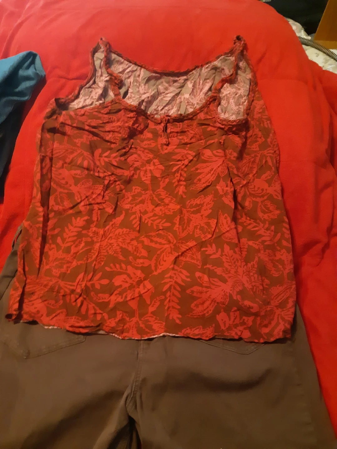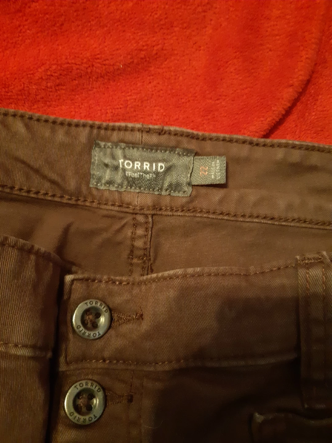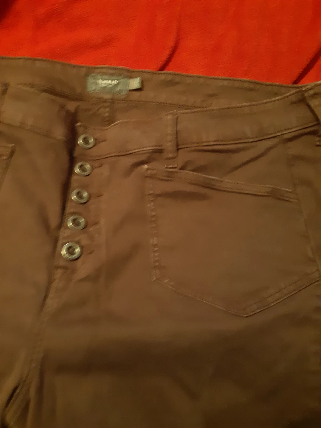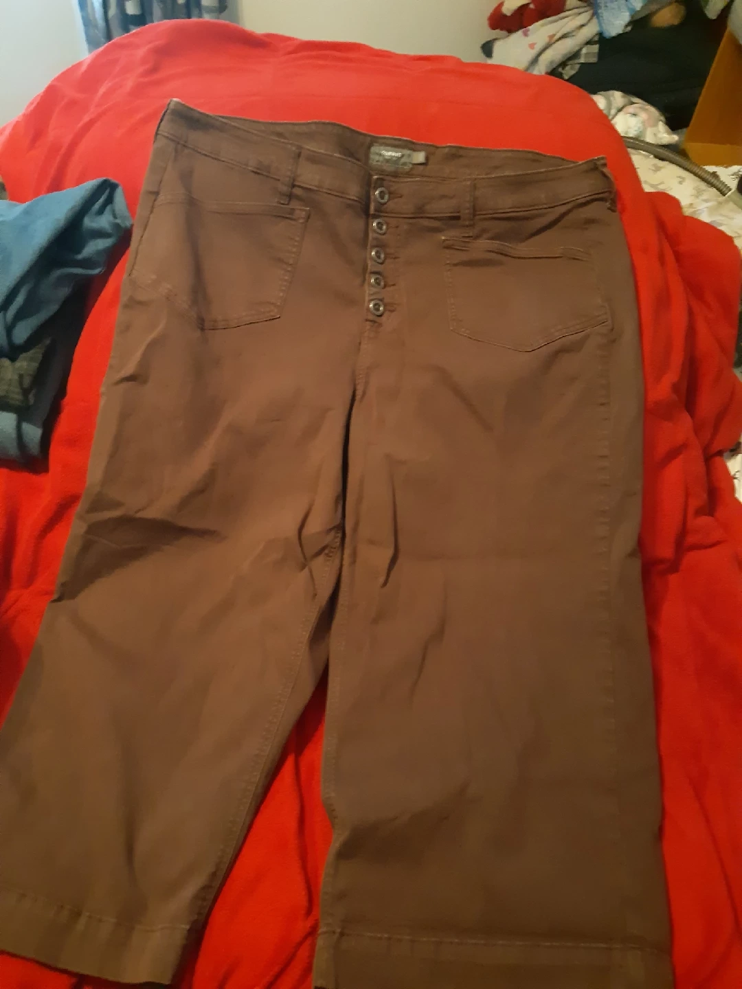 Selling a pair of Torrid cropped pants in a lovely brown colour! They're a size 22 and feature a button-up front. Perfect for a casual day out or dressing up with a nice top. matching top looks amazing on. Pants come to the knees. fit so nice in the waist and hips. shirt comes with it.