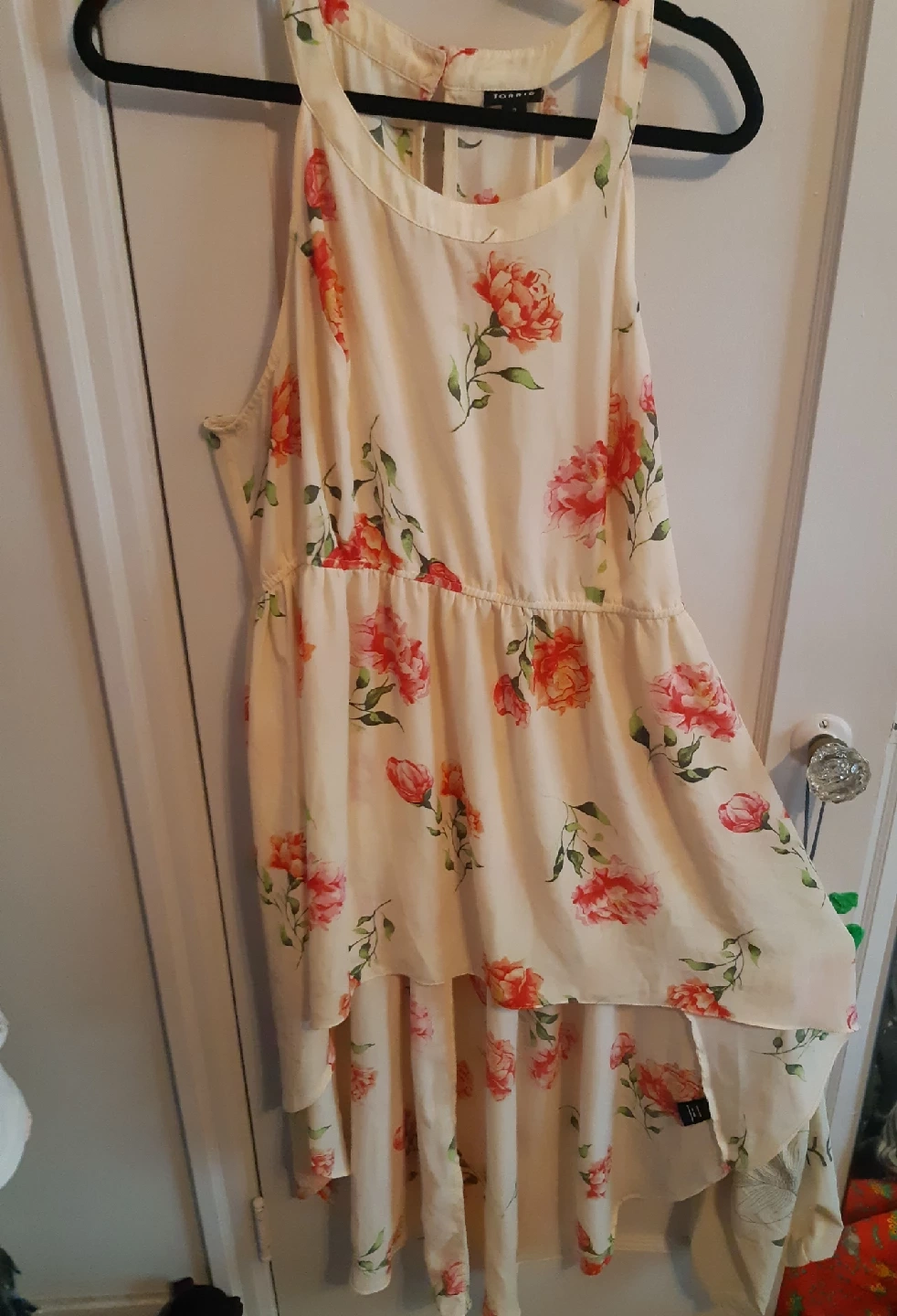 This beautiful Torrid dress features a lovely floral pattern and a stylish high-low hem. It's a size 2 and would be a great addition to your wardrobe! This dress is just beautiful on.