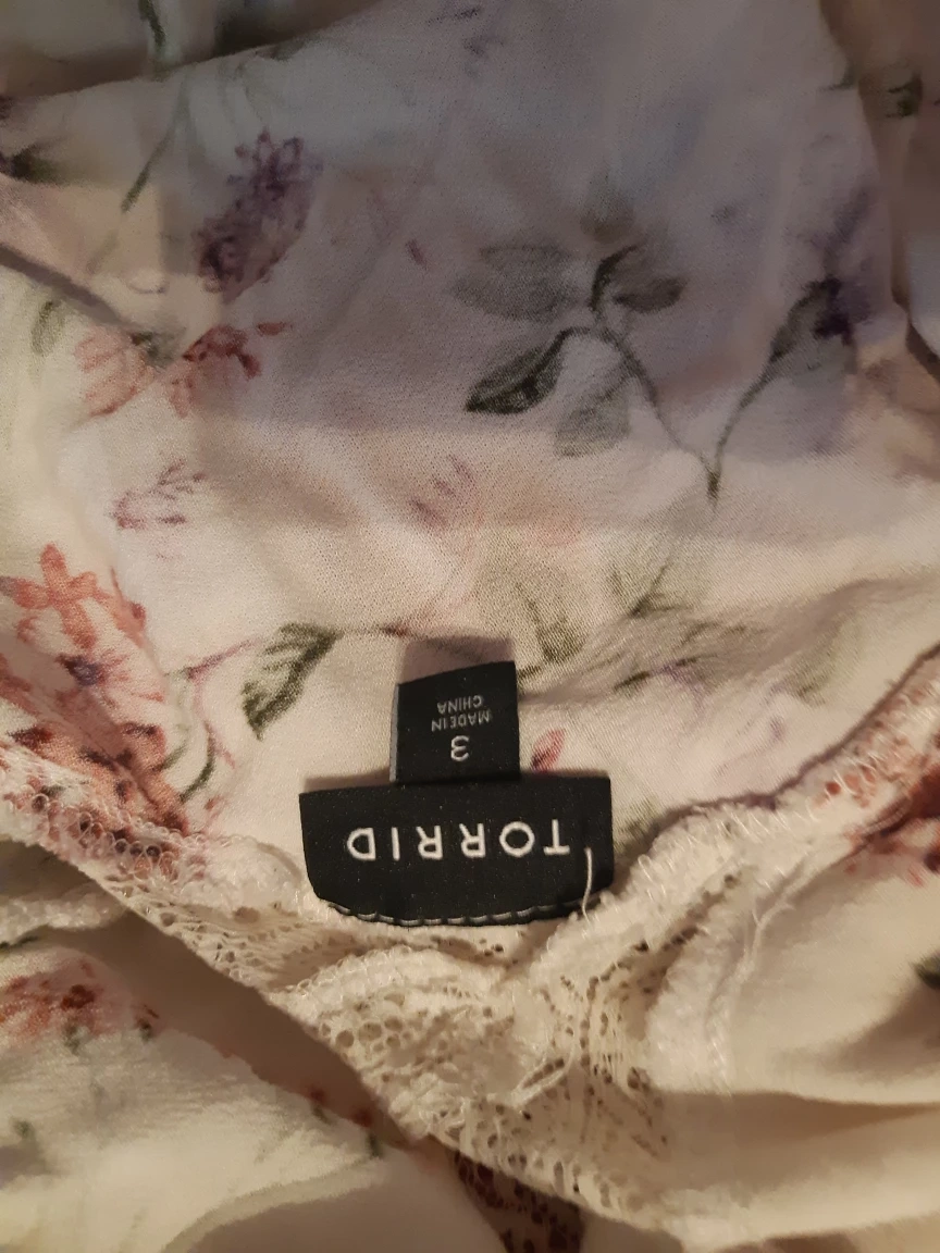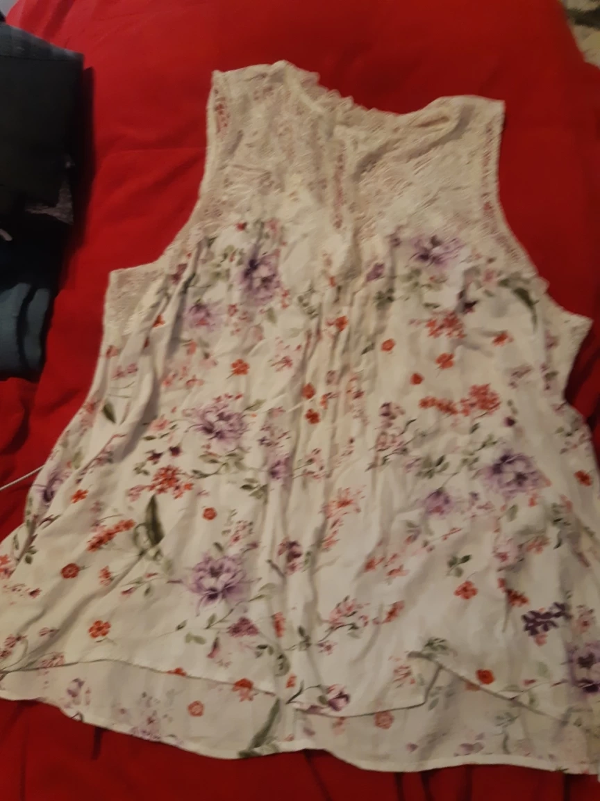 Selling a cute Torrid tank top with a floral print and lace detailing! It's a size 3.