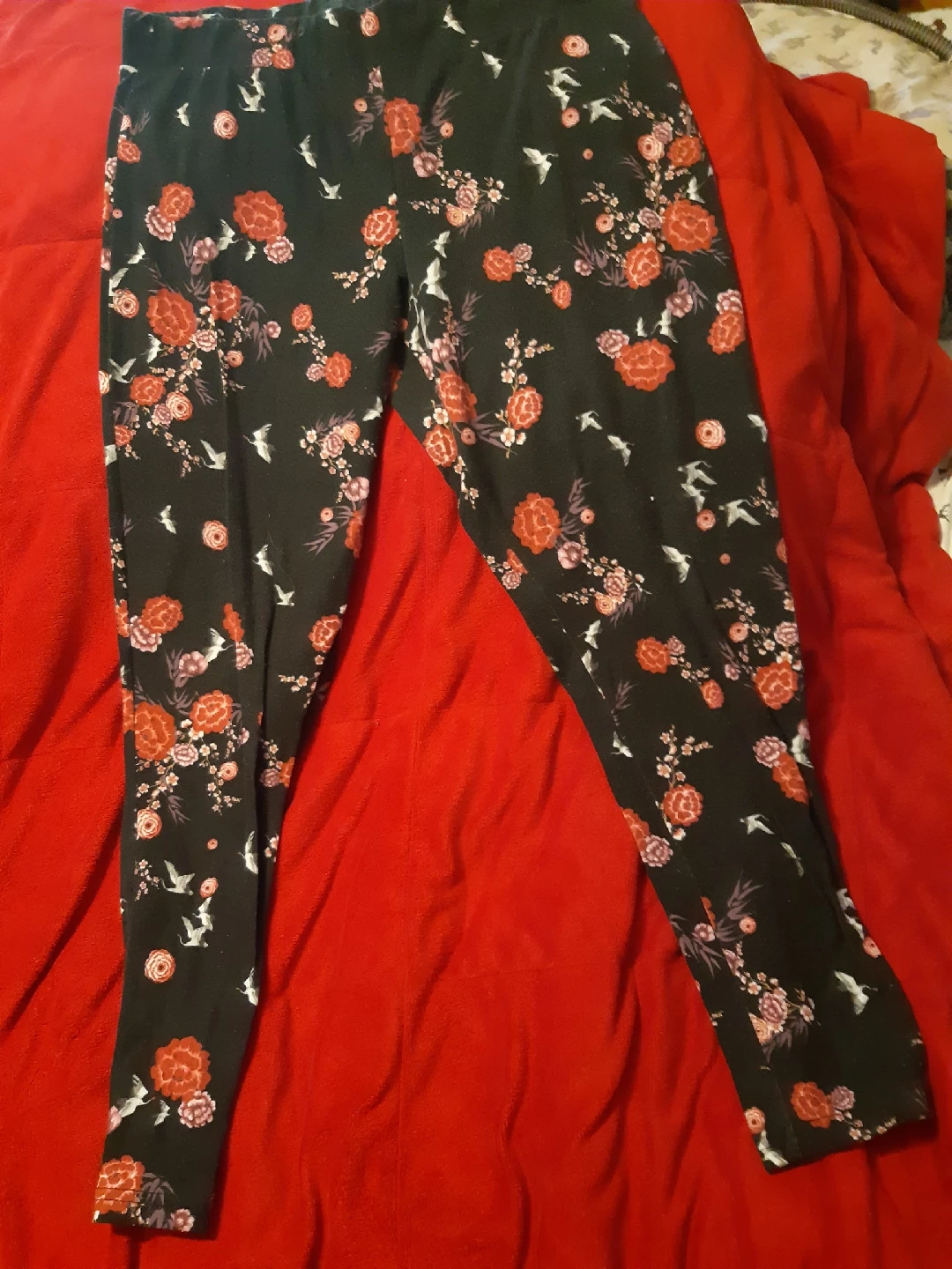 Cute Torrid leggings in a size 2! They feature a black background with a floral and bird print. Perfect for adding a touch of style to your casual outfits These leggings look so good on.