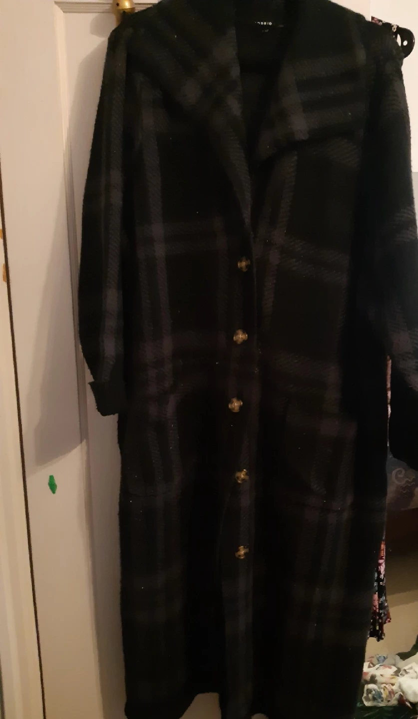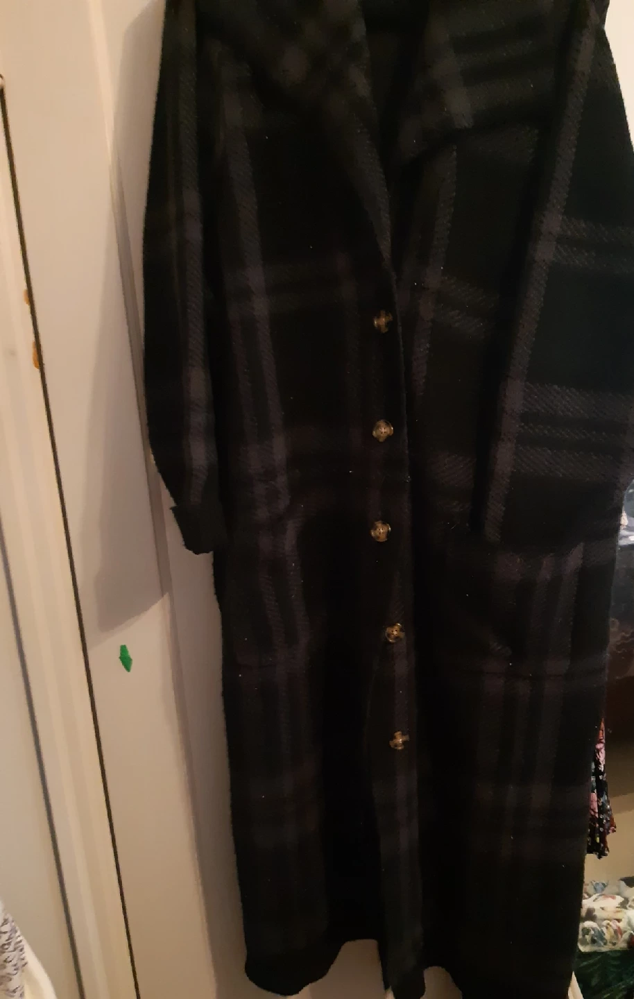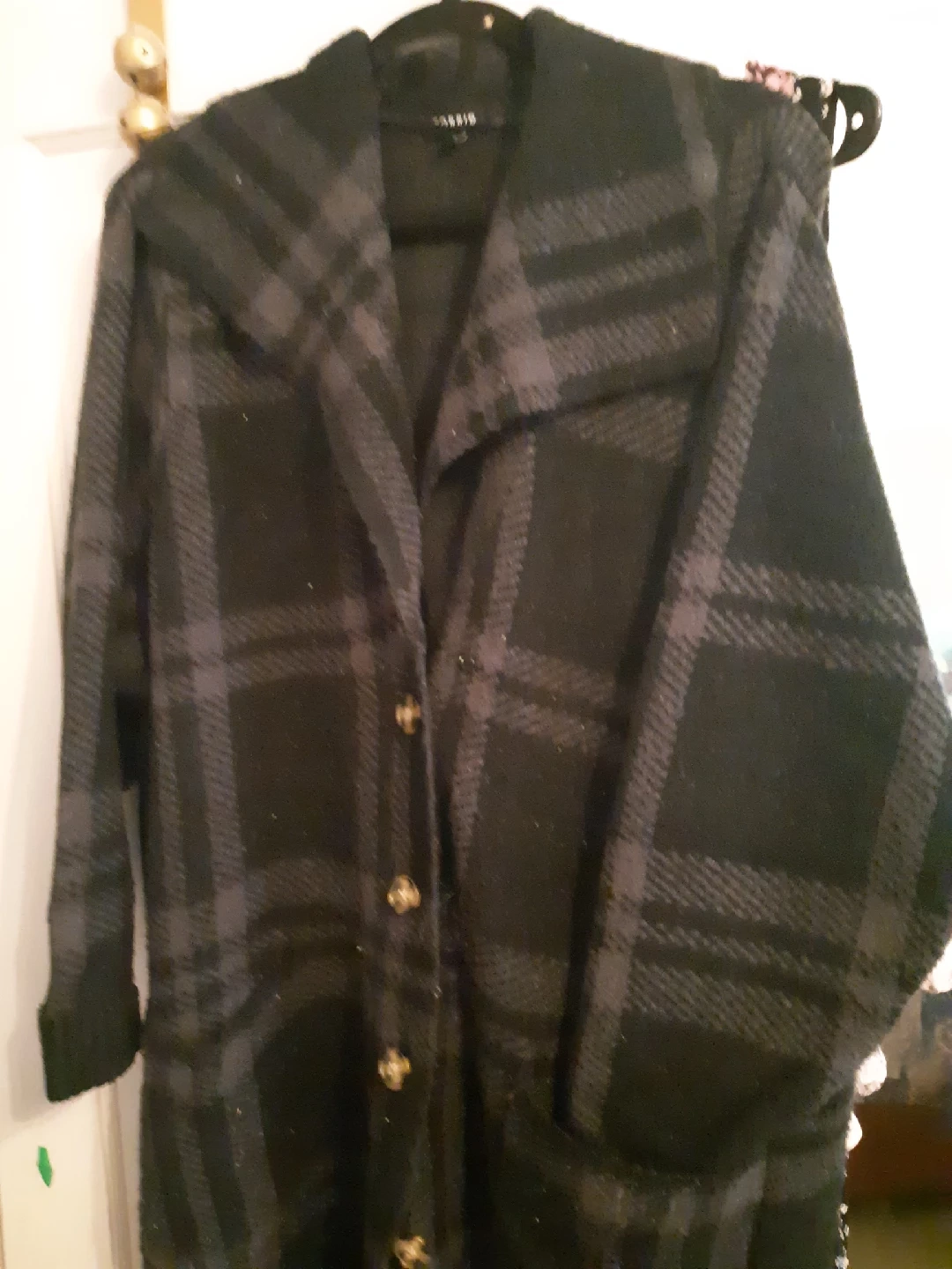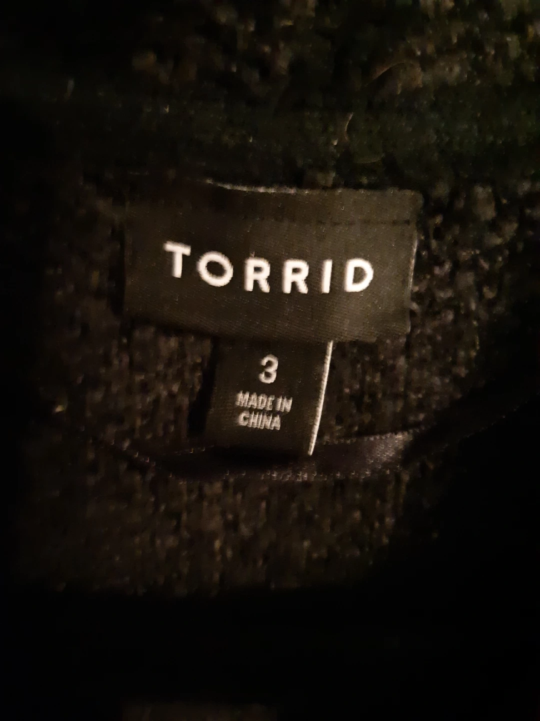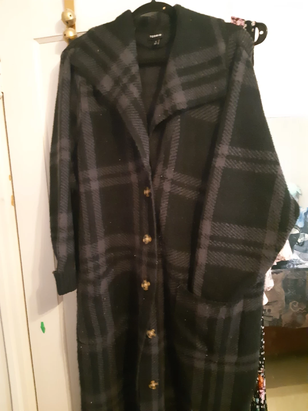 Cozy up in this stylish Torrid plaid coat! It's a size 3 and features a classic plaid pattern in black and grey tones. Perfect for adding a touch of sophistication to your winter wardrobe. gorgeous sweater coat.