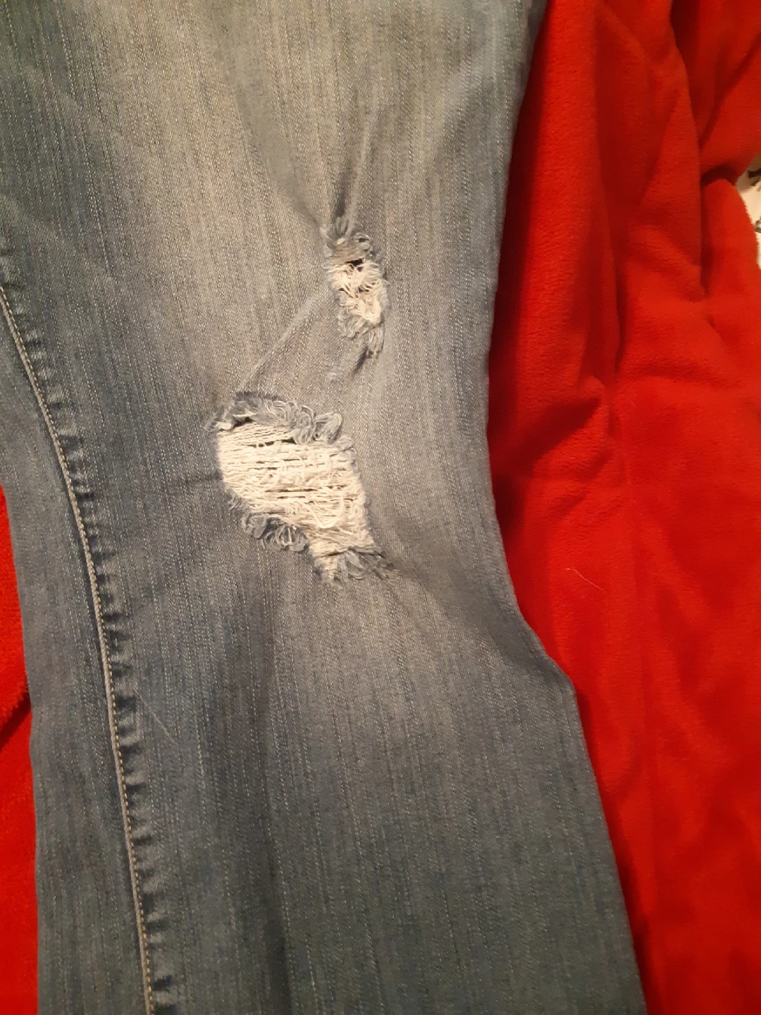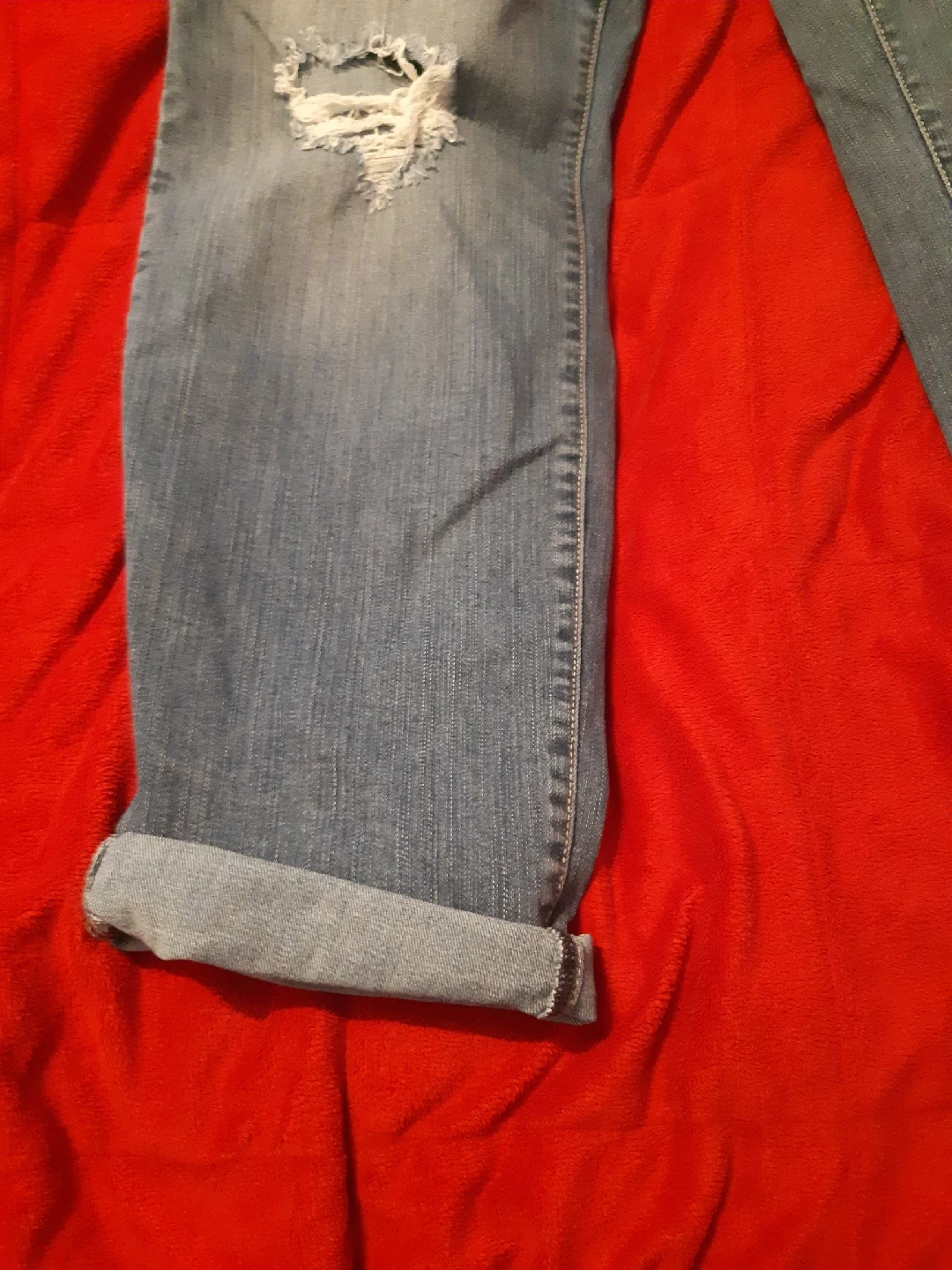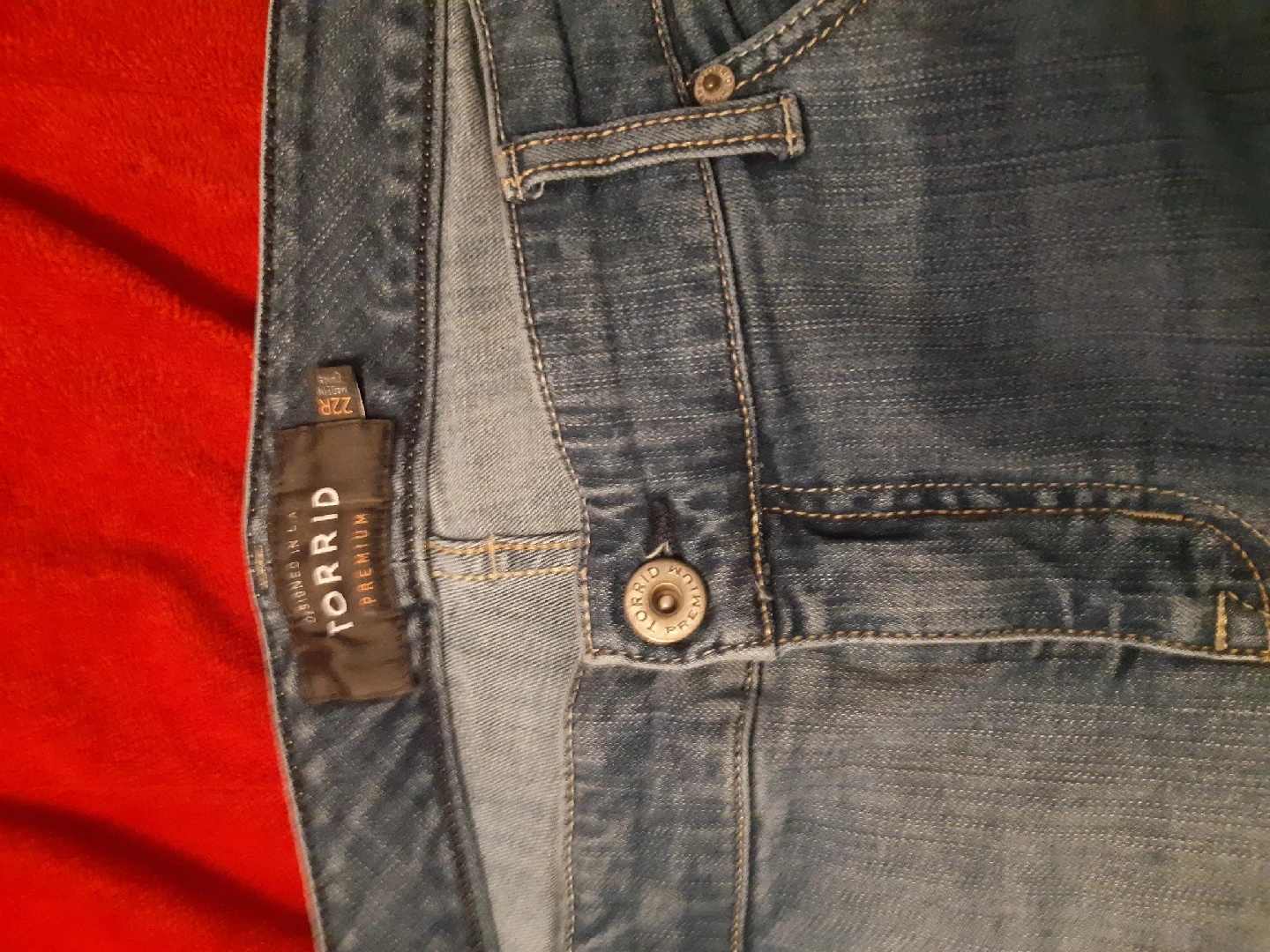 Selling a pair of Torrid skinny jeans in size 22. They're a light wash denim with some stylish rips at the knees. Perfect for a casual look! These jeans fit so nice!!!