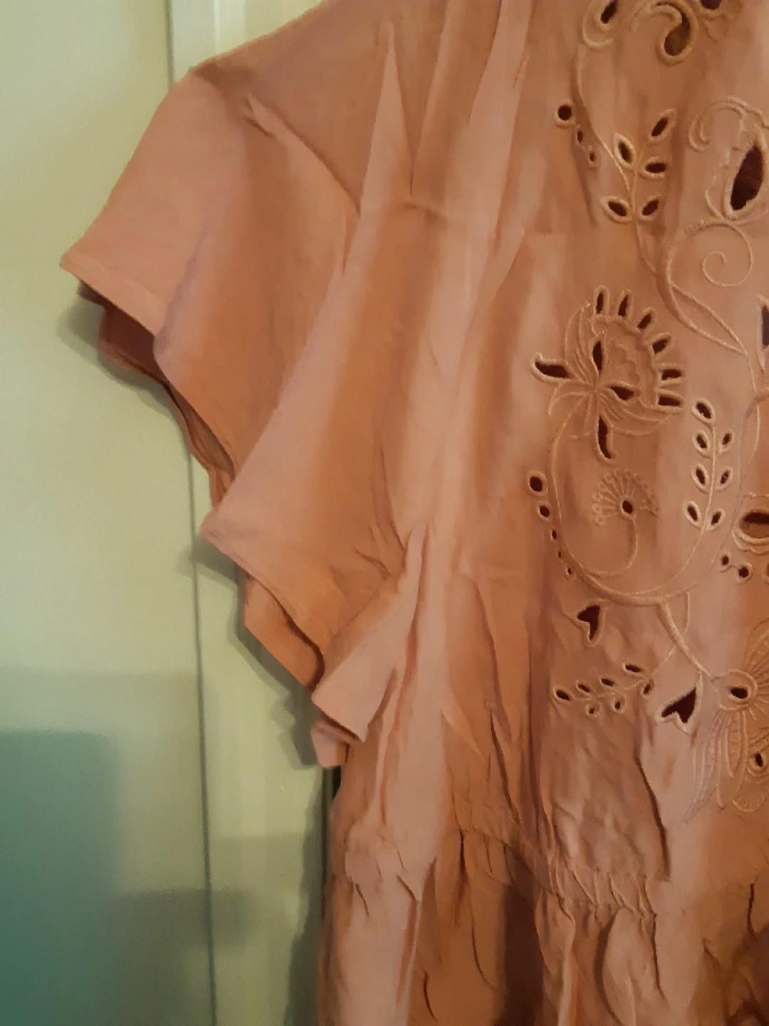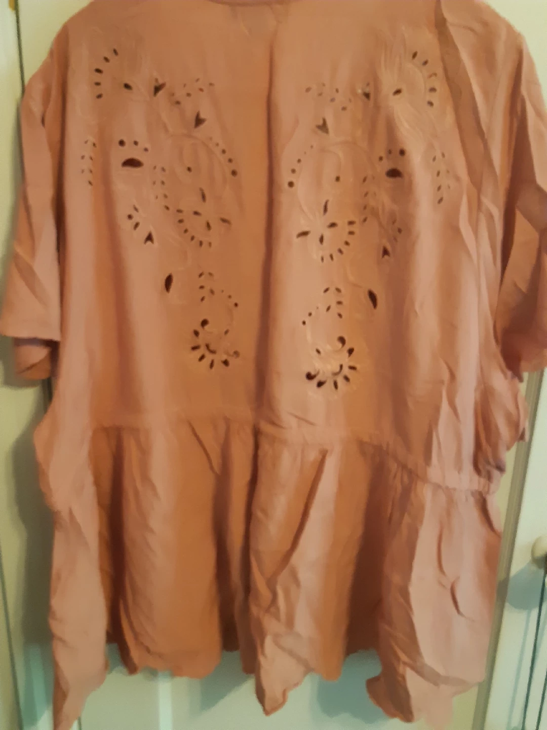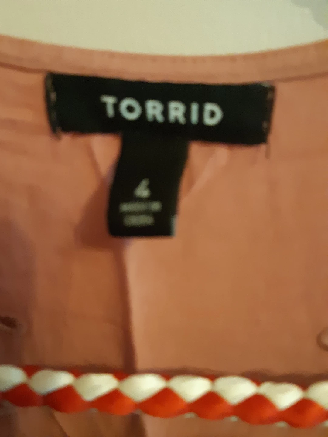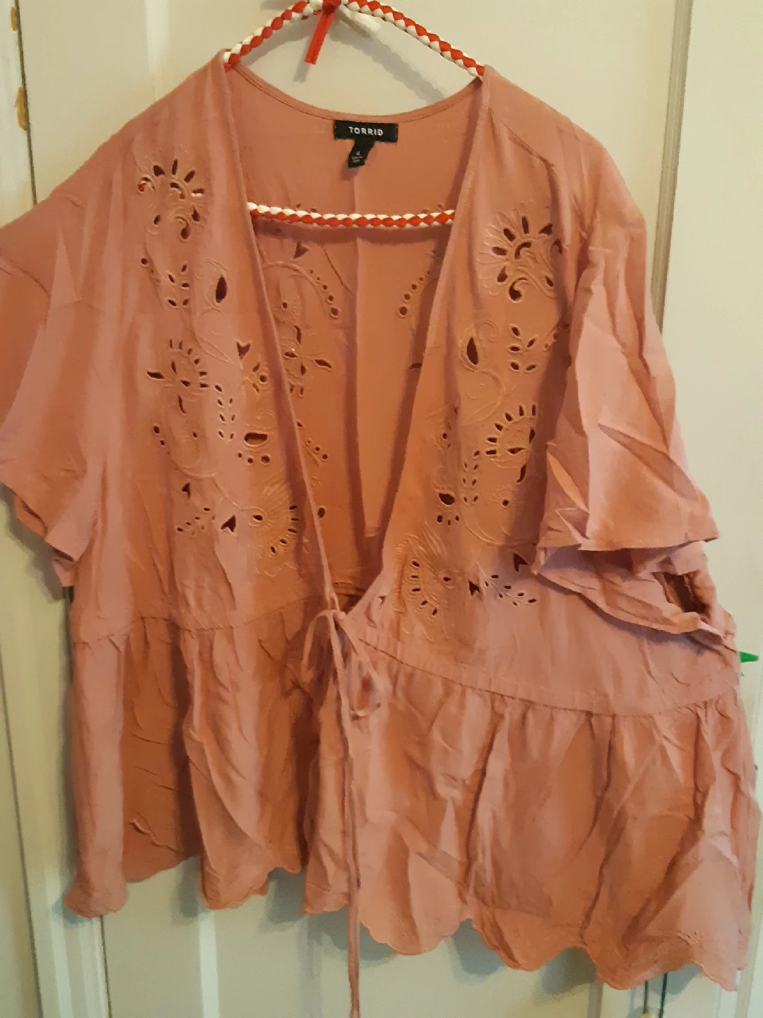Selling a Torrid top in size 4. It's a pretty pink colour with lovely embroidery details. Perfect for adding a touch of elegance to your wardrobe! This looks so good on.