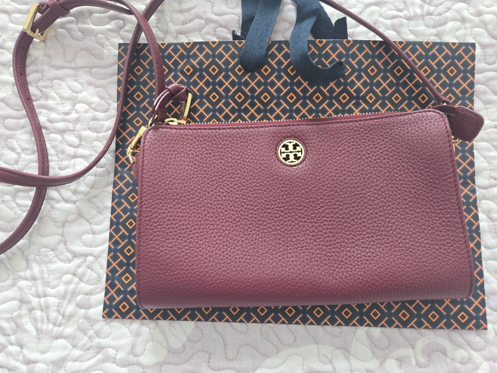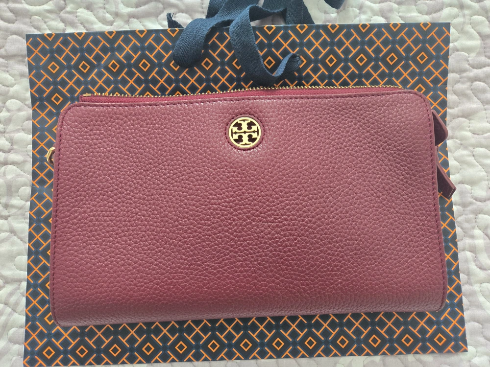 Selling a Tory Burch crossbody bag in a lovely burgundy colour! It's in great condition and comes with the original Tory Burch shopping bag. Perfect for keeping your essentials close and adding a touch of class to any outfit