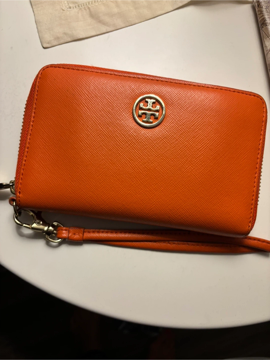 10Selling a Tory Burch wallet in a vibrant orange colour! It's in great condition and features the iconic Tory Burch logo. Perfect for keeping your essentials organized with a touch of style