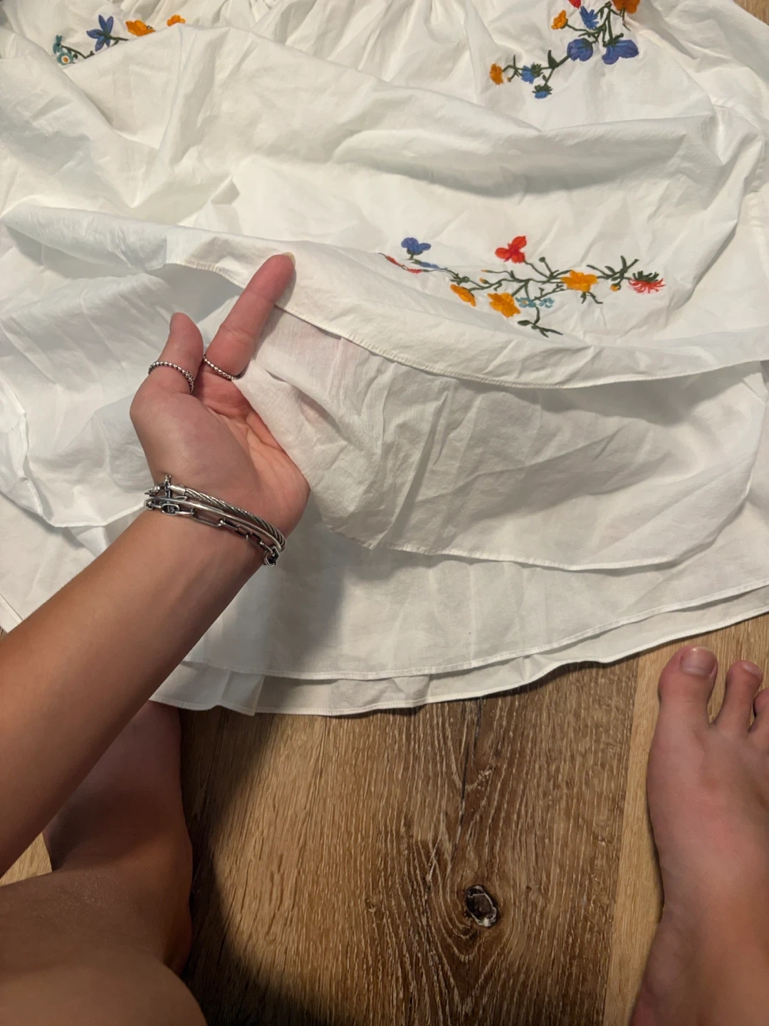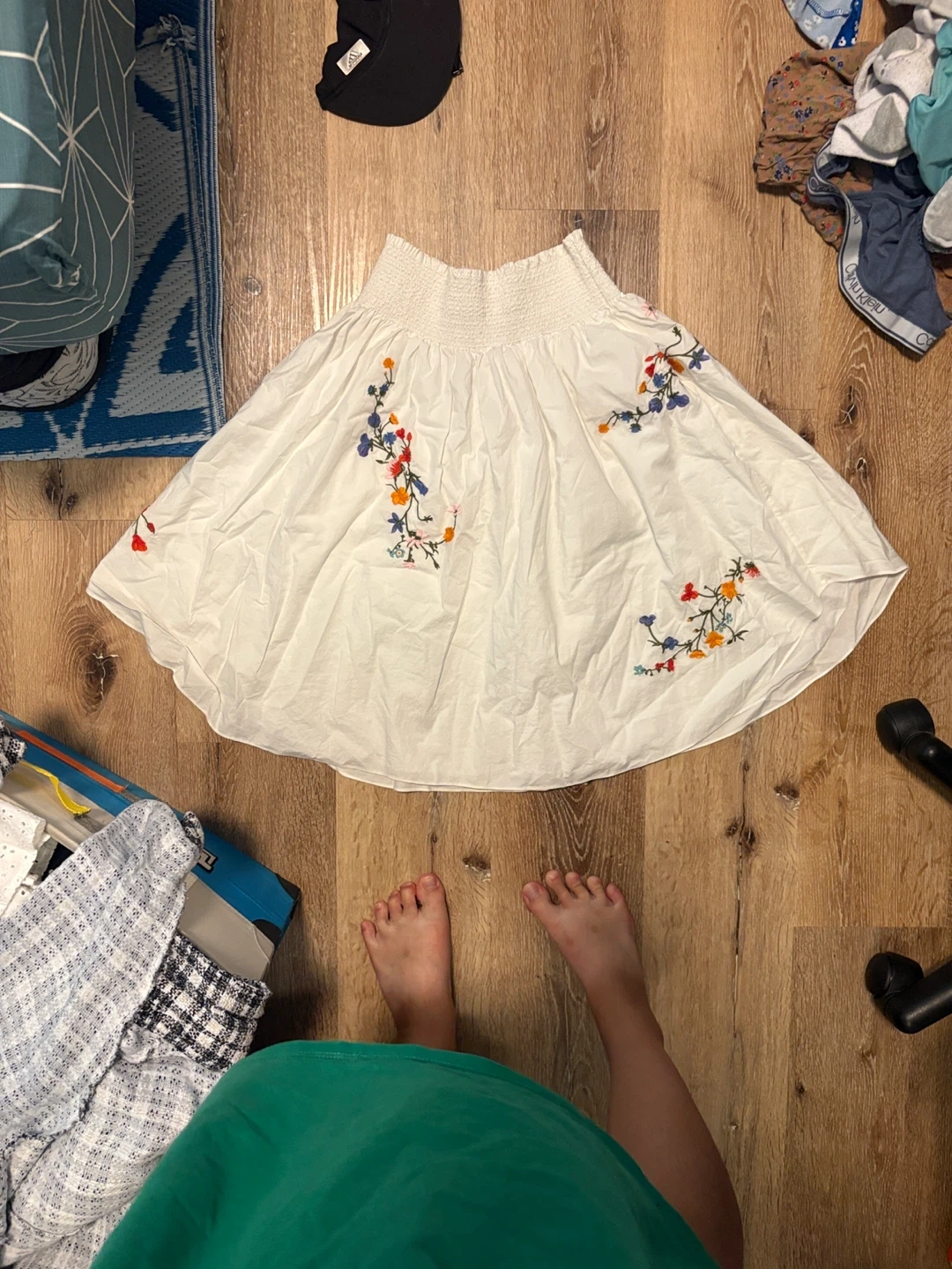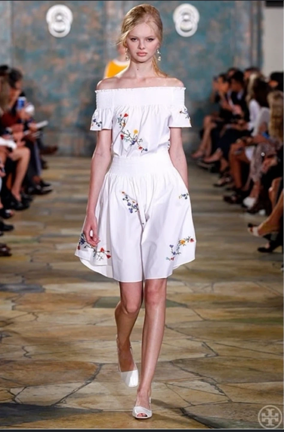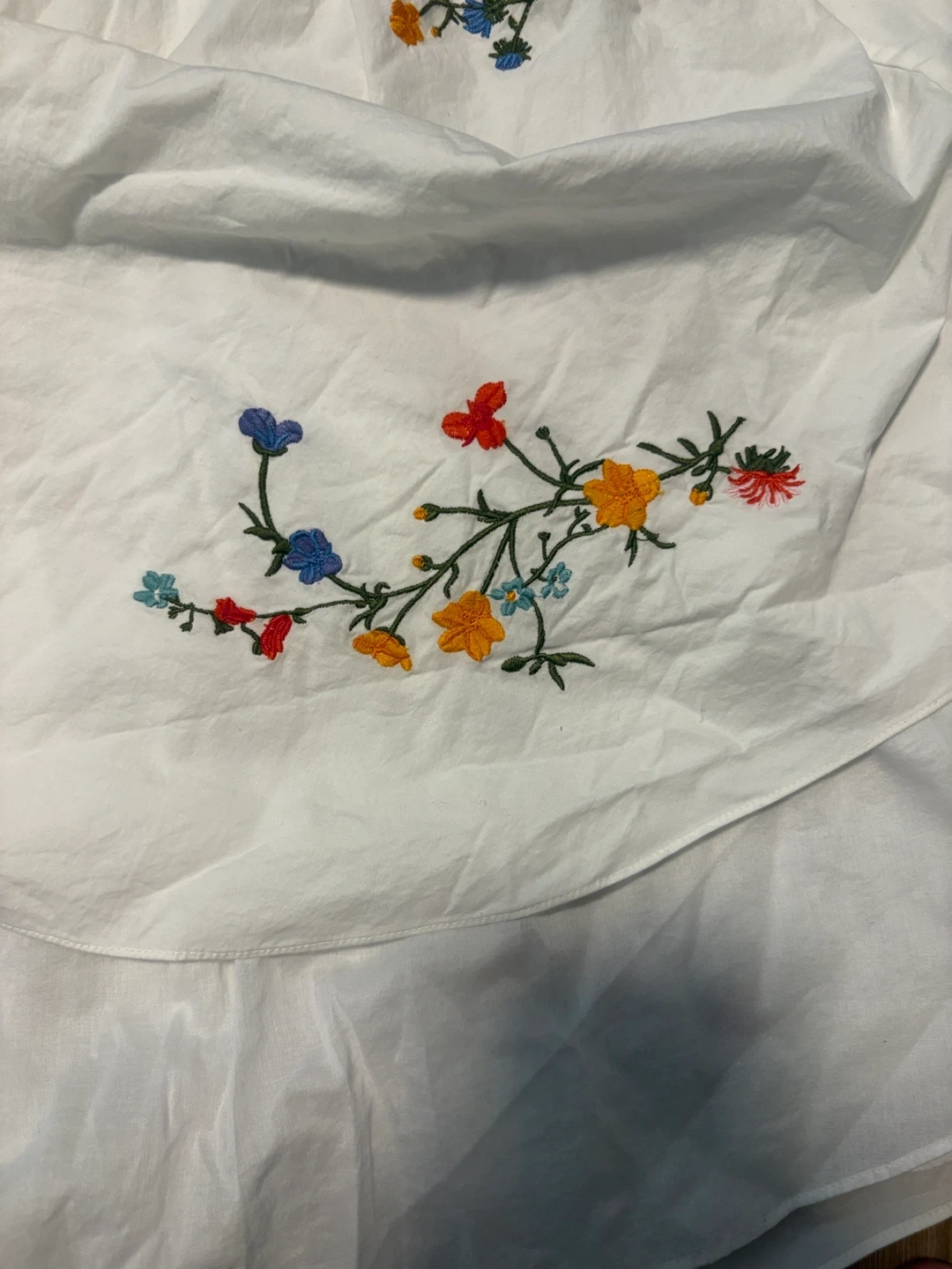 15This is a cute Tory Burch white skirt with floral embroidery. It's in great condition and perfect for spring or summer! The skirt is white and features colourful floral embroidery. It's a skirt that can be dressed up or down